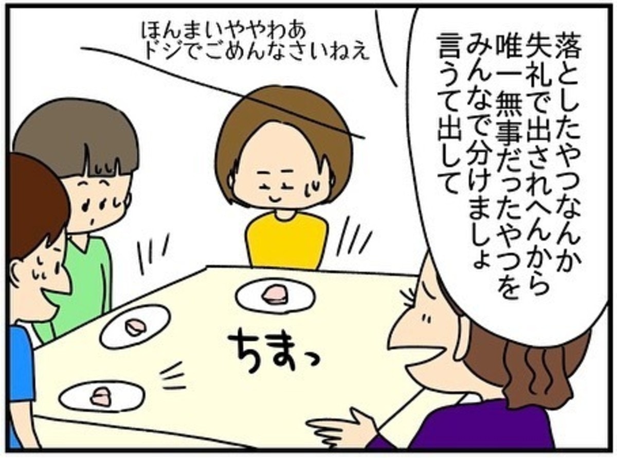 わざと手土産を落として、唯一無事だったものをみんなに分けてふるまう母の姿をチコちゃんは過去にたくさん見てきました。