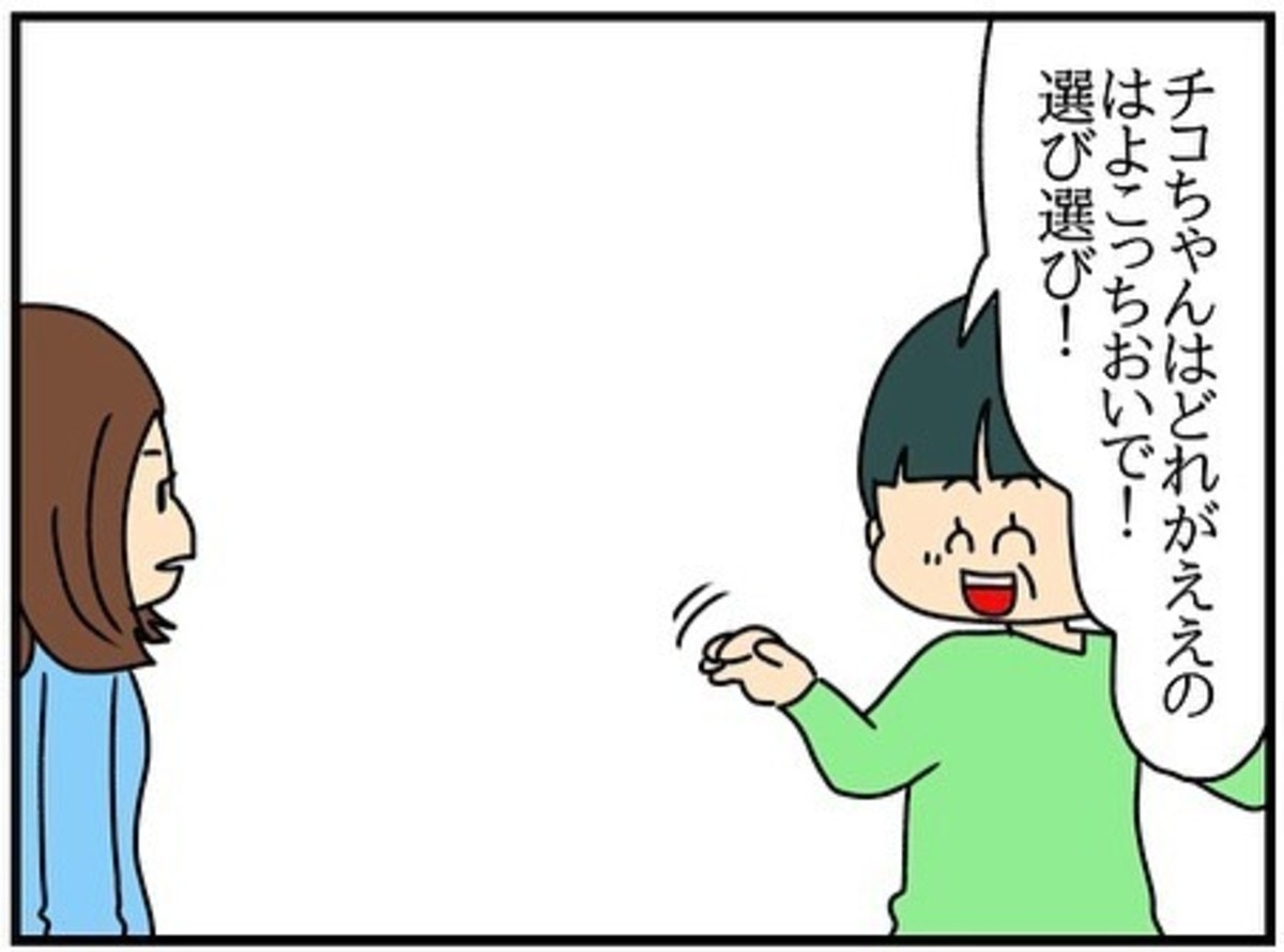 譲り合うことが家族の証拠だと思っていたチコちゃんにとって、一緒に譲り合う中に入れてくれることが本当に嬉しかったようです。