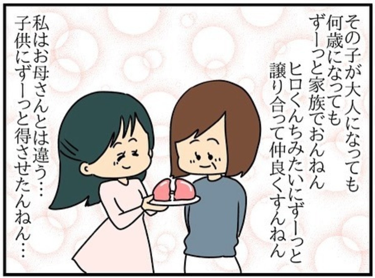 母の反応とは違い、義両親も夫もケーキを囲んで嬉しそうに譲り合っています。
