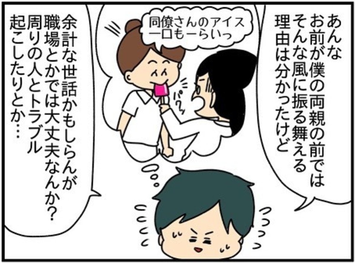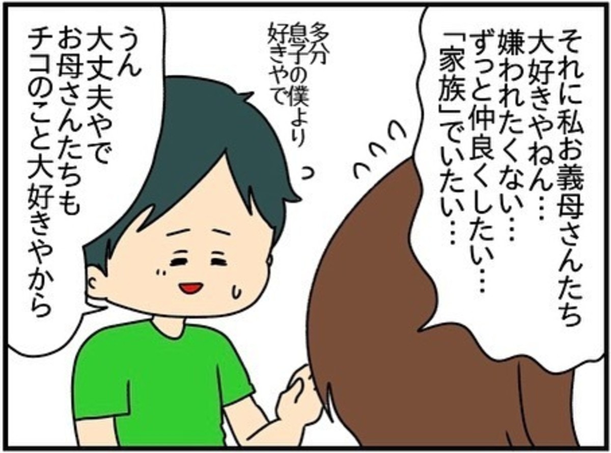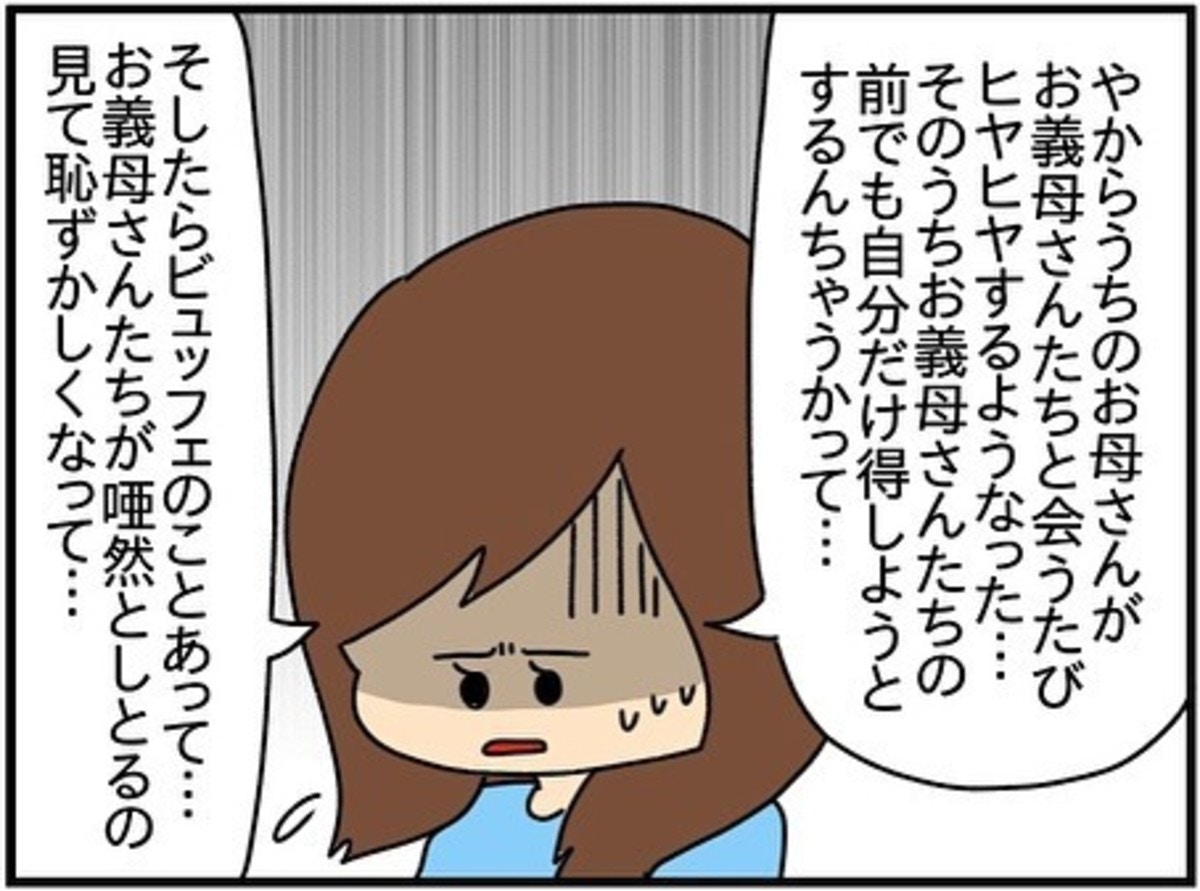 義両親のことが好きで、嫌われたくないという気持ちと、実の母が義両親の前でも自分だけ得をする振る舞いをすることにヒヤヒヤするようになりました。