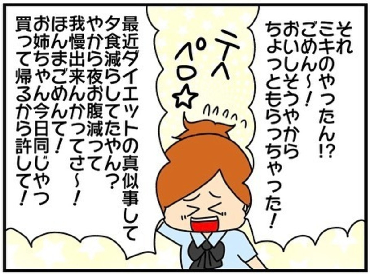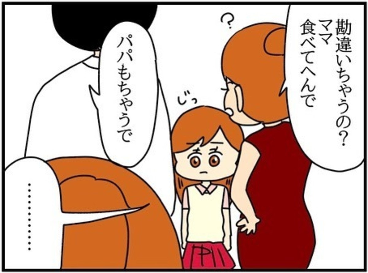 なんとか冗談で済まそうとして、自分が食べてしまったとおどけて伝えると、家族がぽかんと目を丸くします。