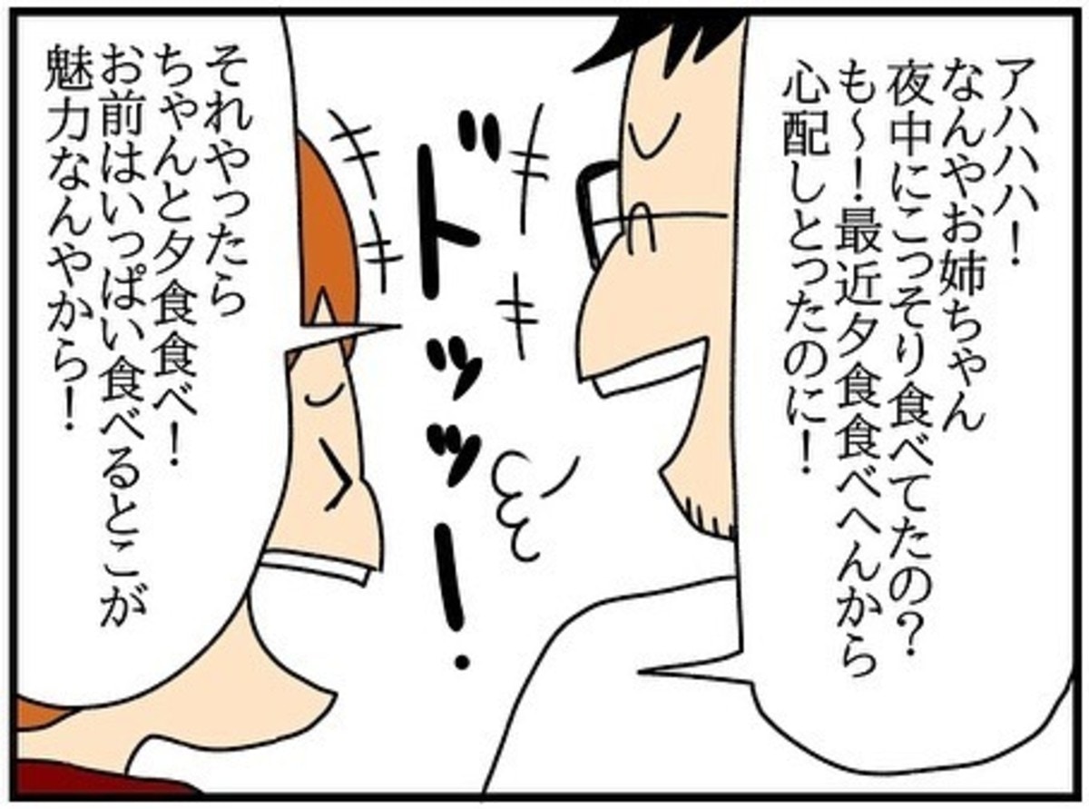 夜中にキッチンをこっそり漁っていたことに気付いた妹から、真っすぐに問いかけられた大谷さんの奥さん。バツの悪さをごまかすように明るく返した言葉に、両親は笑ってくれましたが、彼女の心は静かに傷付いていました。
