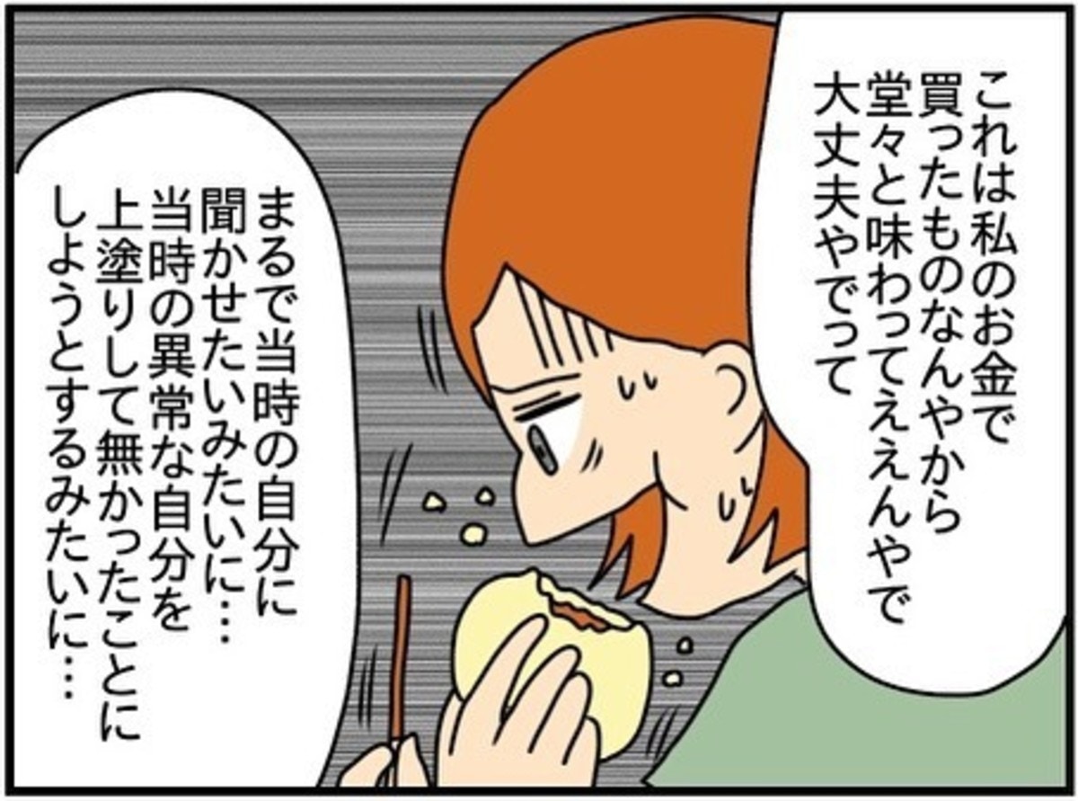 実家での盗み食いの記憶と衝動が再燃し、職場で人のお菓子に手を伸ばしそうになった大谷さんの奥さん。なんとかそのときは思いとどまりますが、帰宅後に「私のお金で買ったから大丈夫」と言い聞かせながら食べ続ける日々。そんな中、大谷さんとの出会いが彼女を少しずつ変えていきます。