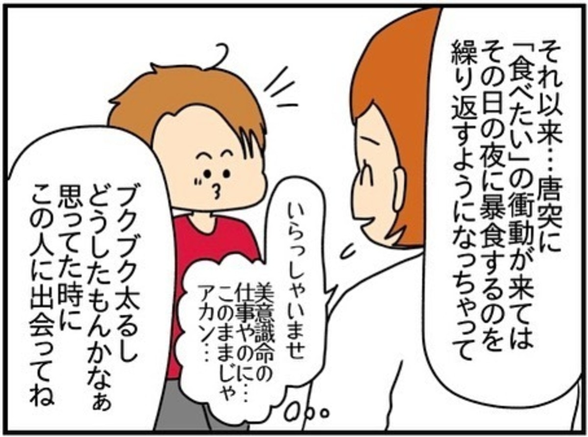 職場でふと見えた同僚のお菓子に、衝動が再びよみがえった大谷さんの奥さん。その衝動を必死で抑えた彼女には、心の奥に抱えた葛藤がありました。そんなときに大谷さんと出会うこととなります。