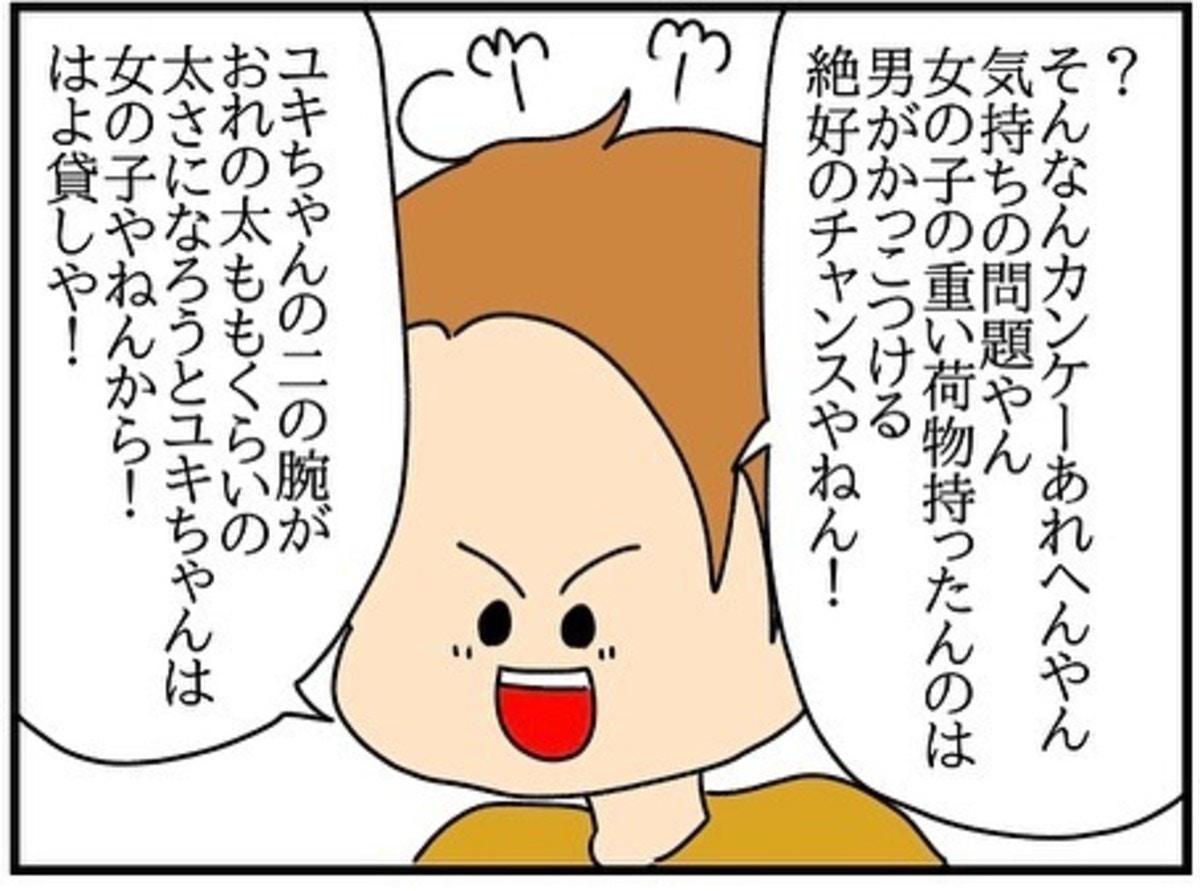 荷物だけでなく、ことあるごとに自分のことを心配してくれたり女の子として接してくれることに心が温かくなります。