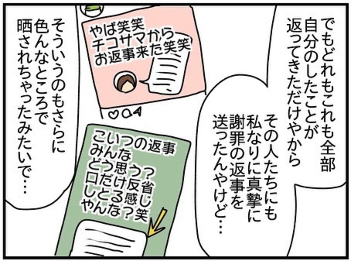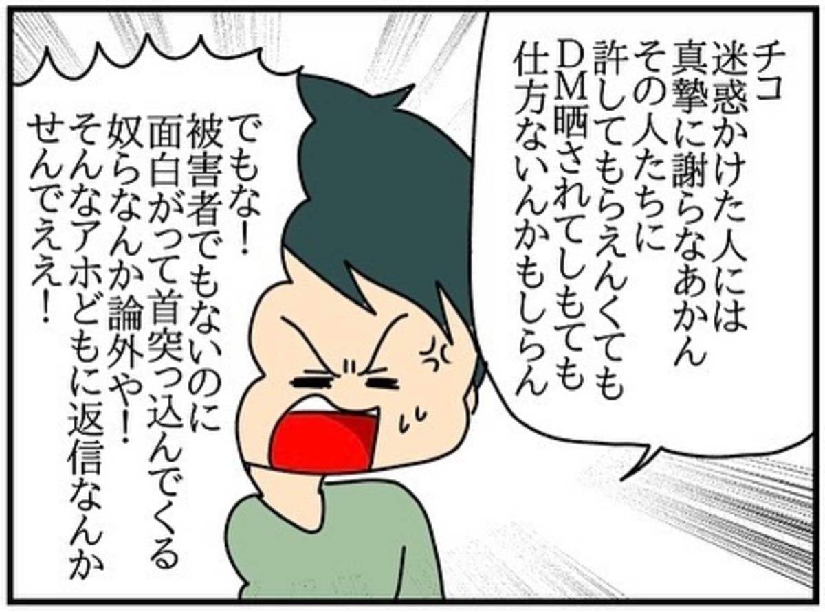 投稿を見た人からも嫌がらせのようなDMやコメントが届くようになり、チコちゃんはその人たちにも謝罪の返事をするようになりました。