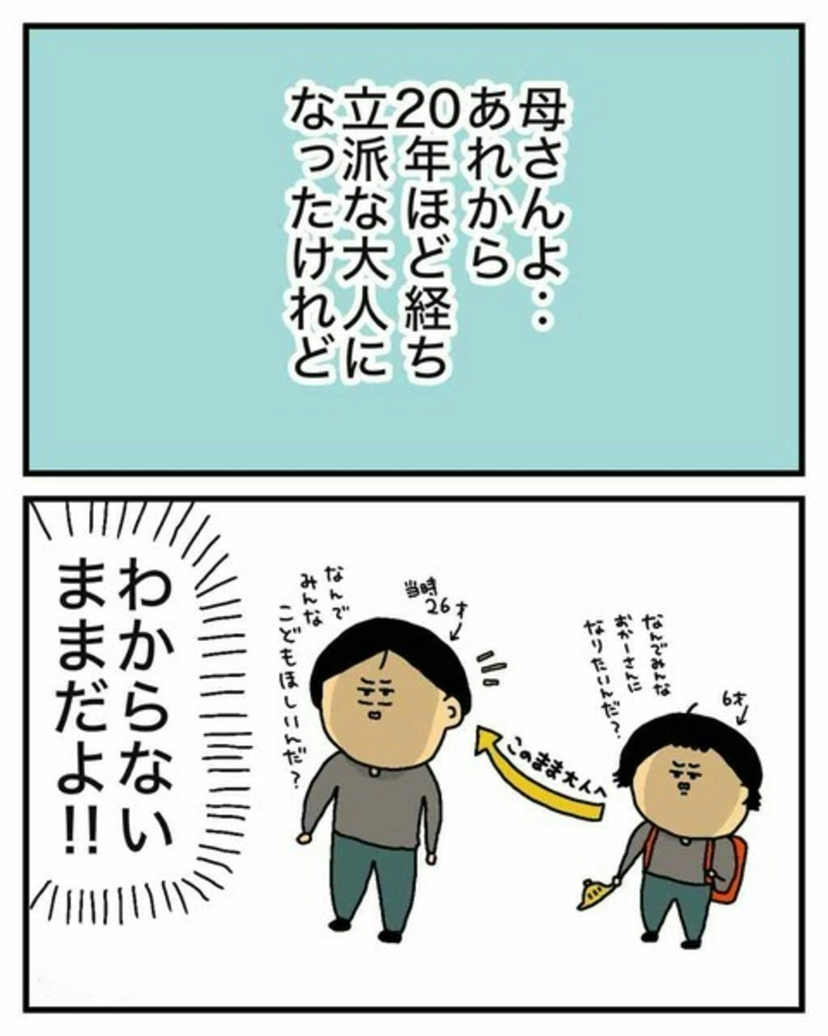 「お母さんになりたい」と話す同級生の夢に、小学生だったえくぼさんはまったく共感できませんでした。その気持ちは、大人になった今も変わりません。
