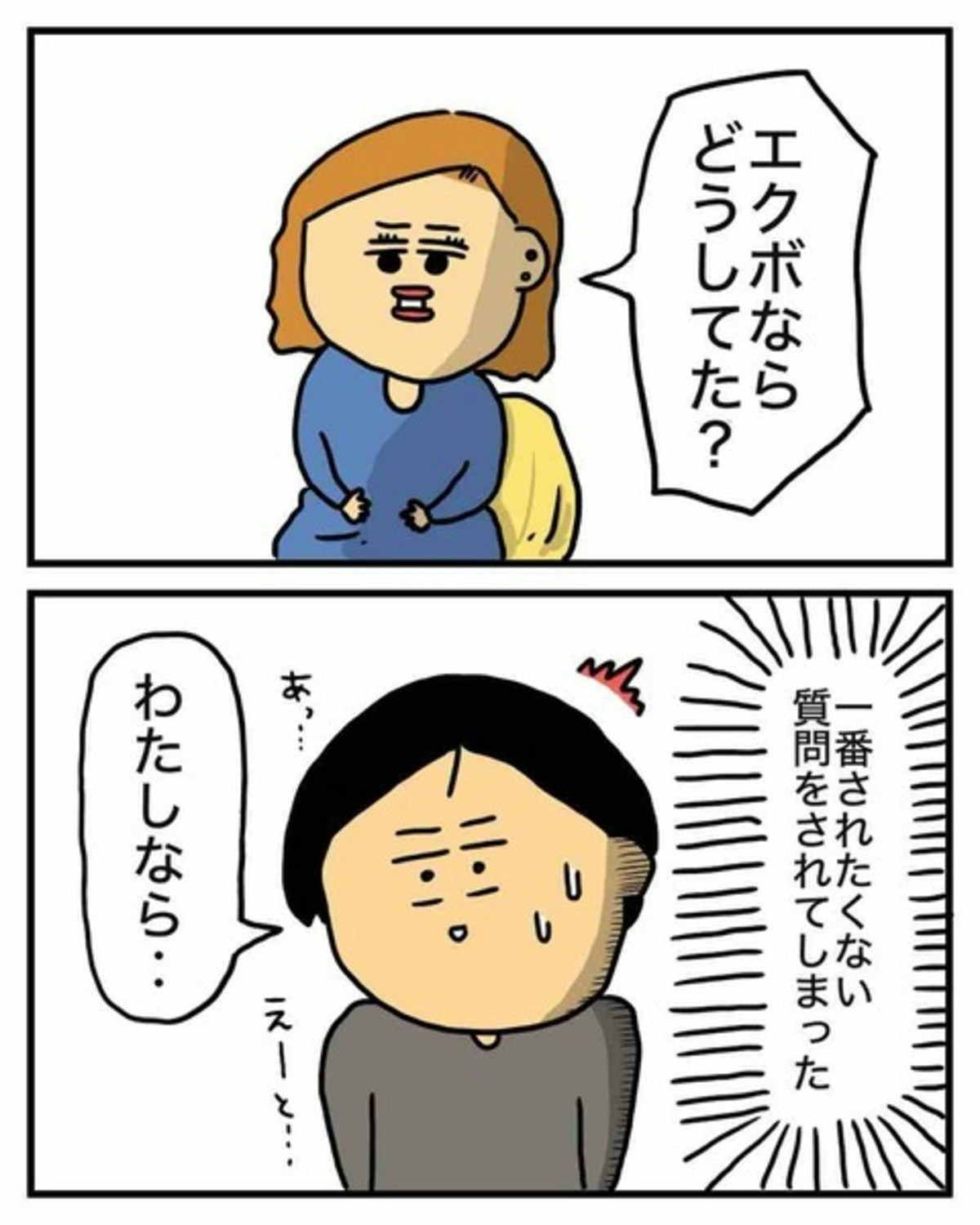 元カレに妊娠を報告したらおろして欲しいと言われ、だけどそれは絶対したくない、おなかの子のために生きたいと思ったというなぁちゃん。「エクボならどうしてた?」と質問を投げかけられたエクボさんは、一番されたくない質問をされてしまったとギクッとします。