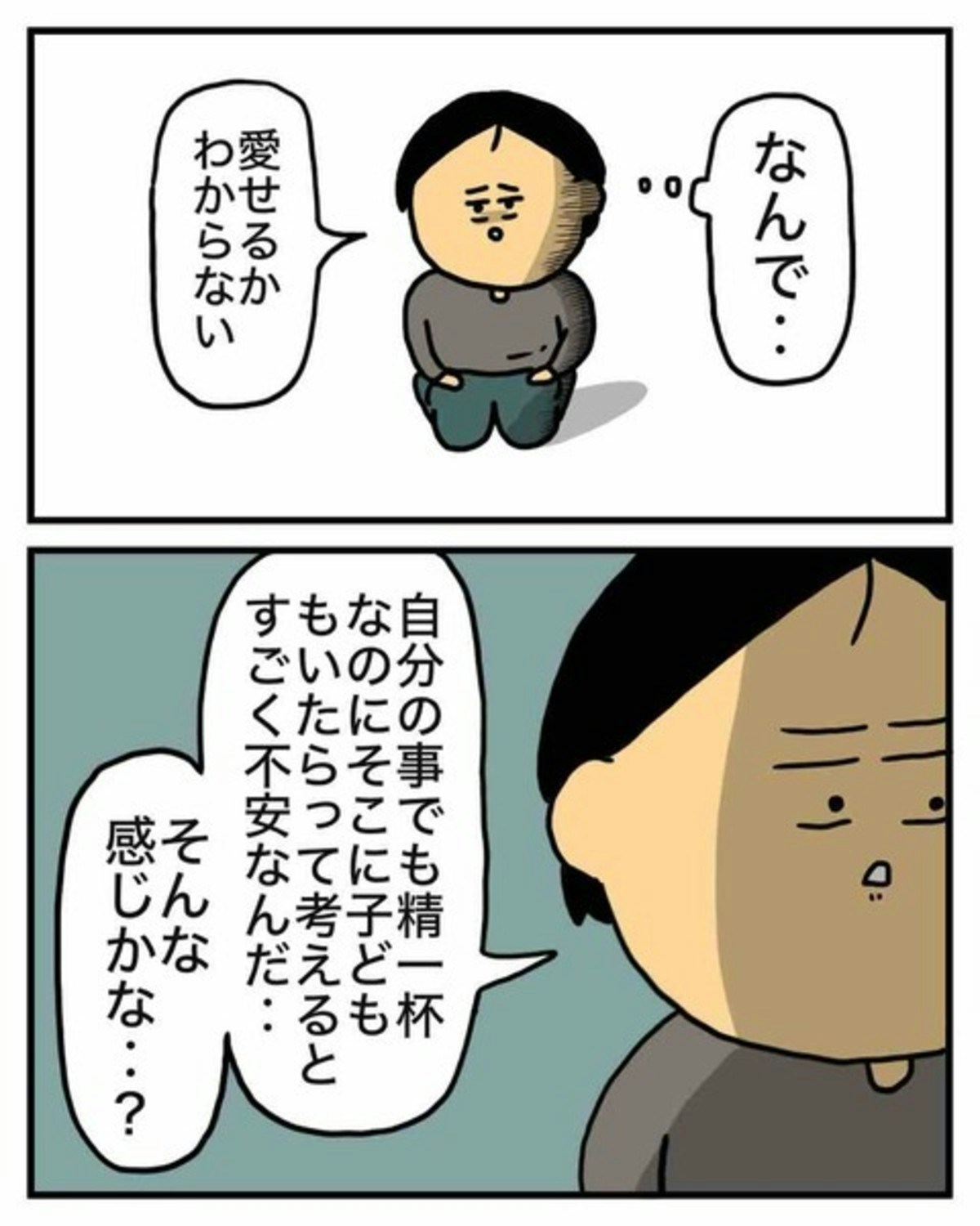 産んでも愛せるか分からないし、自分のことででも精一杯なのにそこに子どももいたらって考えるとすごく不安なんだ。それを聞いたなぁちゃんは、私もそんな感じだったけど妊娠したら変わったよ、と言います。しかしエクボさんは自分は当たり前のことができない人間だと思っていることをさらに説明するのでした。