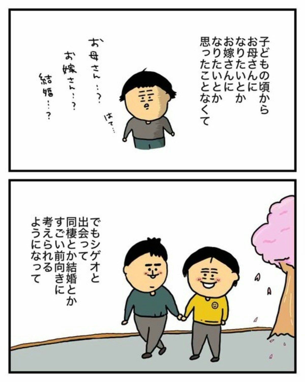 母や友人に背中を押されるようにして、ついにシゲオさんに思いを伝えると、「いろんな生き方があるんだし、絶対こうでなきゃいけないなんてないんだから、一緒にゆっくり考えよう」と優しく受け止めてくれました。