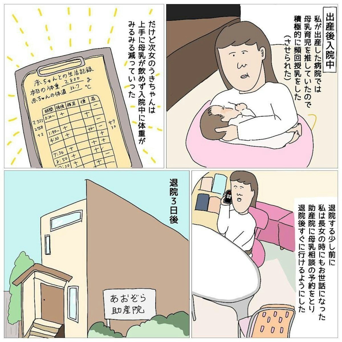 みうらまるこさんは上手に母乳を飲むことができなかった次女のため、退院3日後から助産院の母乳指導を受けていました。