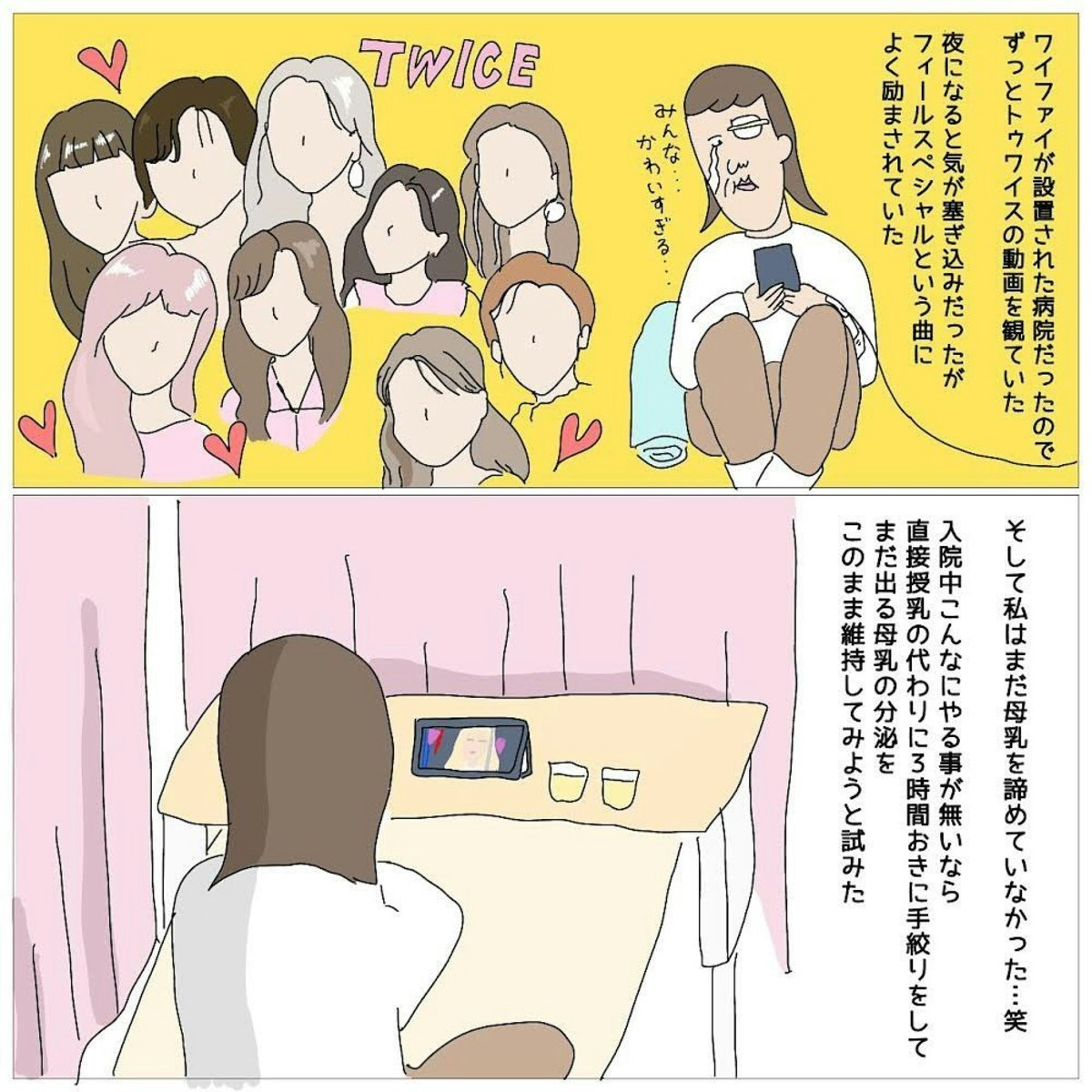 つい数日前まで二人の育児に奮闘していたというのに、突然の入院で暇すことになってしまい落差に戸惑ったことでしょう。それでも、みうらまるこさんは好きなアイドルの曲を聴き、自身を鼓舞しながら乗り越えました。
