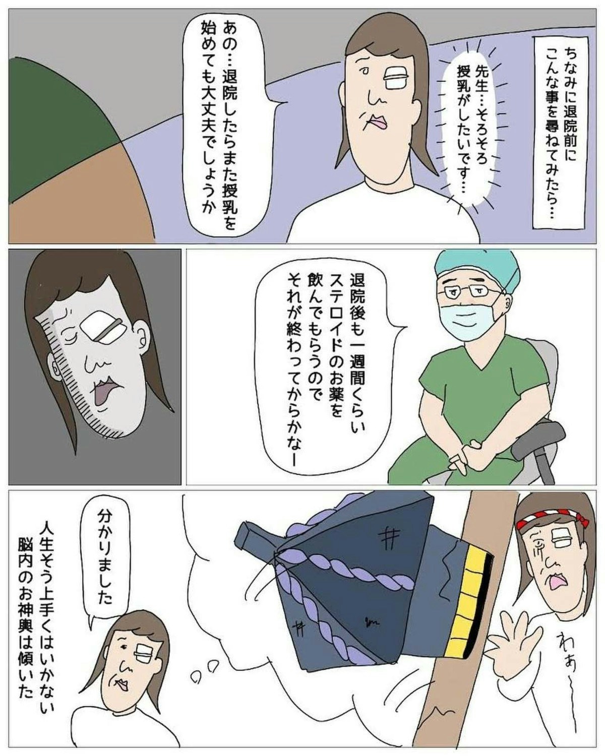 退院後も服薬の治療が1週間続くので、すぐに授乳再開というわけにはいきませんでした。もちろん顔面麻痺の治療が最優先だと頭では分かっていても、早く赤ちゃんに母乳を飲んでもらいたい気持ちががあるもの理解できますね。