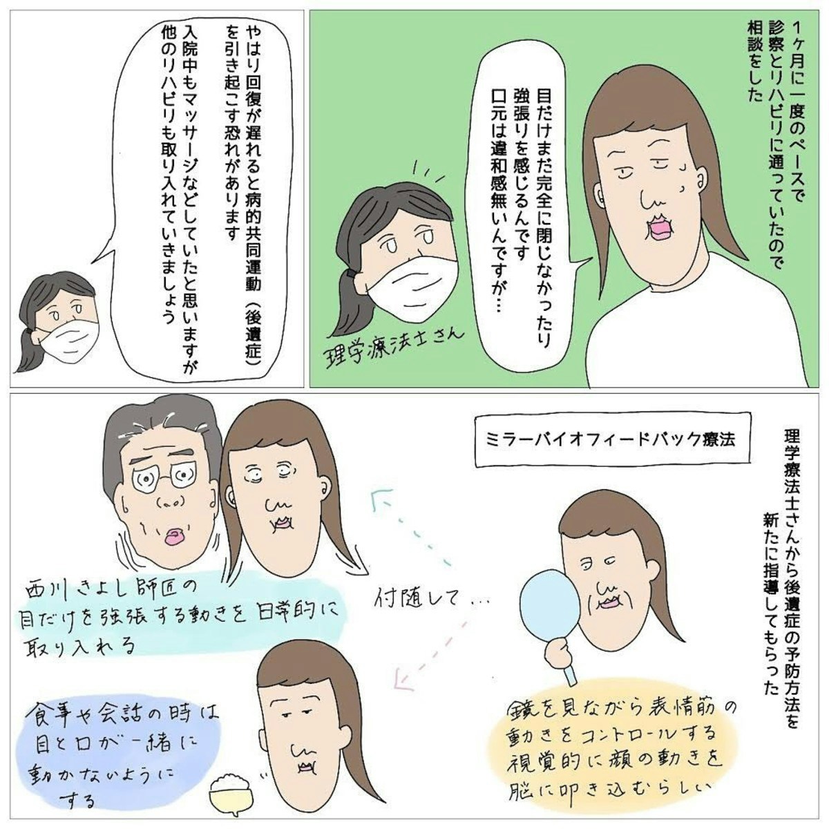 発症から2か月が過ぎたころには、鼻と口が以前のように動かせるまで顔面麻痺が改善されていました。しかし、目の戻りはなかなか思うようになりません…。