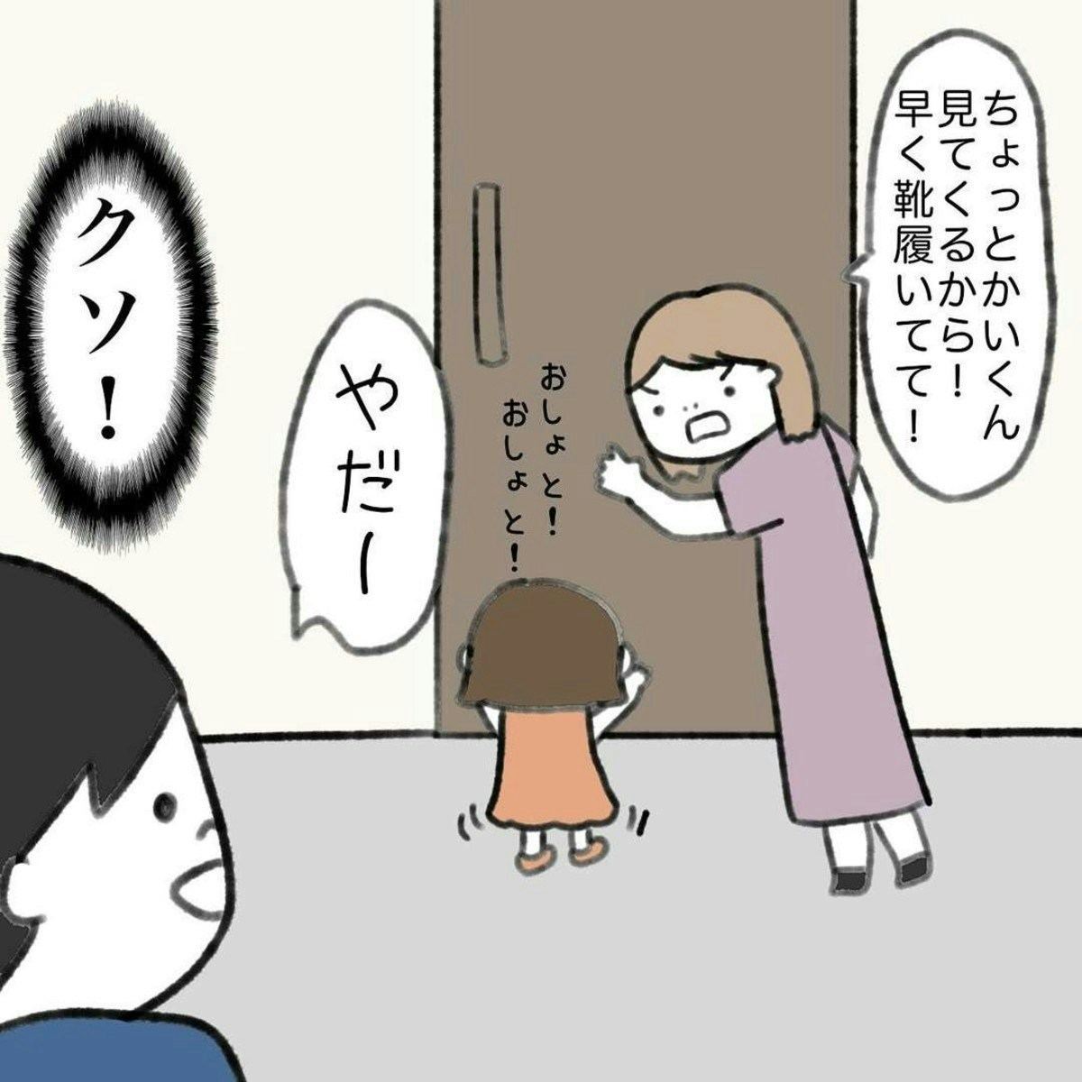 ですが、かかじりさんの子どもたちは外で遊びたい様子。わが子だけで遊びに行かせることはできないため、こうたくんを急かせますが、言うことを聞いてくれません…。