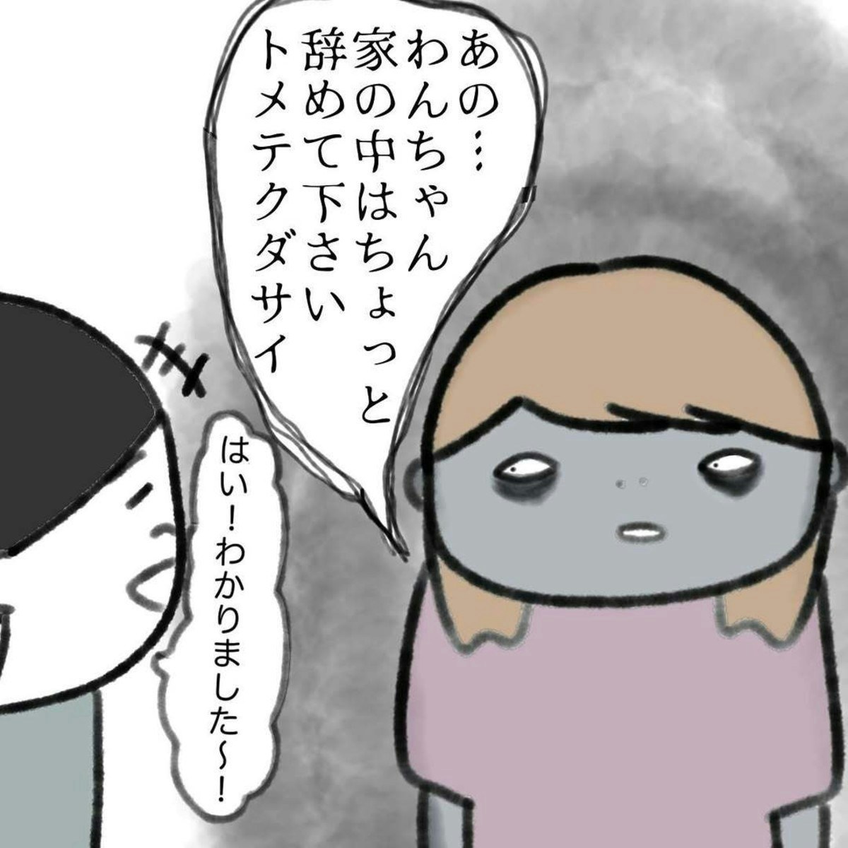 まさか、突然、他人の子どもが犬を連れて家の中に勝手に入るなんて…。リビングで走り回る犬の姿に、動揺が隠せないかかじりさん…。