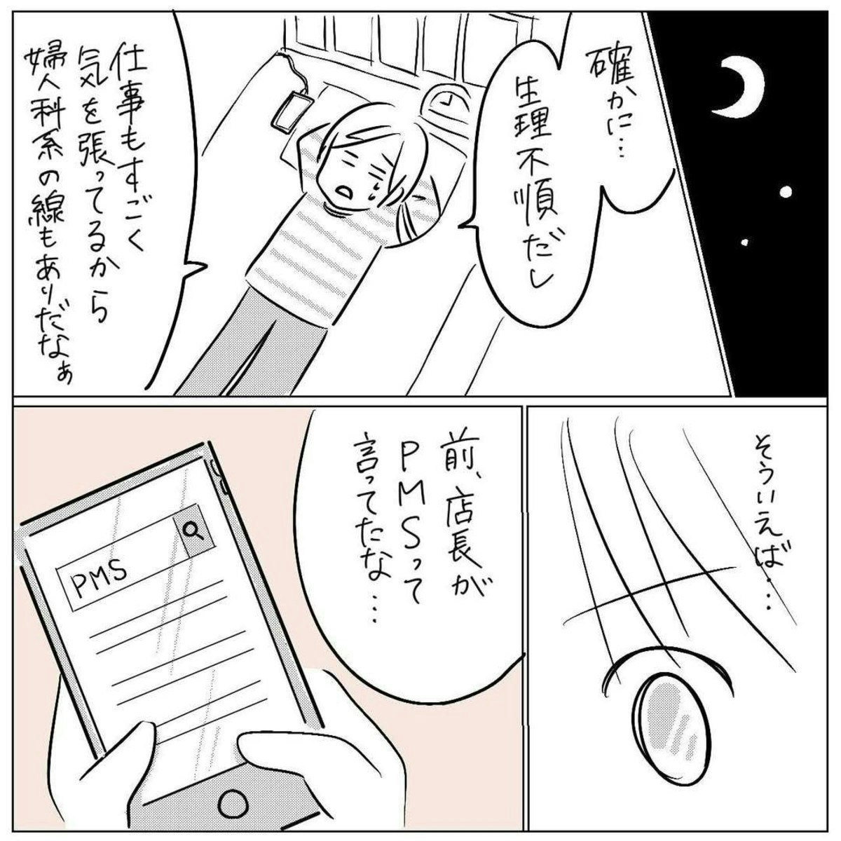 ホッターさんは、薬局長からのアドバイスで、婦人科を受診することを考えます。また、以前、勤めていたドラッグストアの店長が、「PMS(月経前症候群)」について話していたことを思い出し、改めて調べてみることに…。
