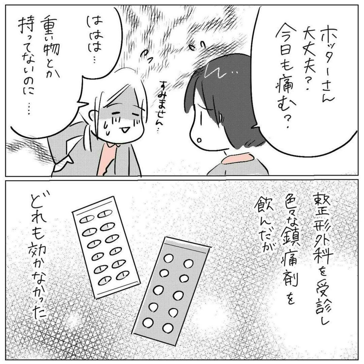 転職をし、気を張りながら仕事をこなしていた、ホッターさん…。すると、体にも不調があらわれます。整形外科を受診しますが、腰痛が緩和されません…。