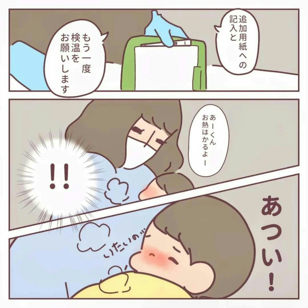 ところが、あーくんの足は回復しません。それどころか、悪化しているように感じ、再び急患センターを受診します。さらに、診察を待っている間に発熱してしまった、あーくん。心配ですね。