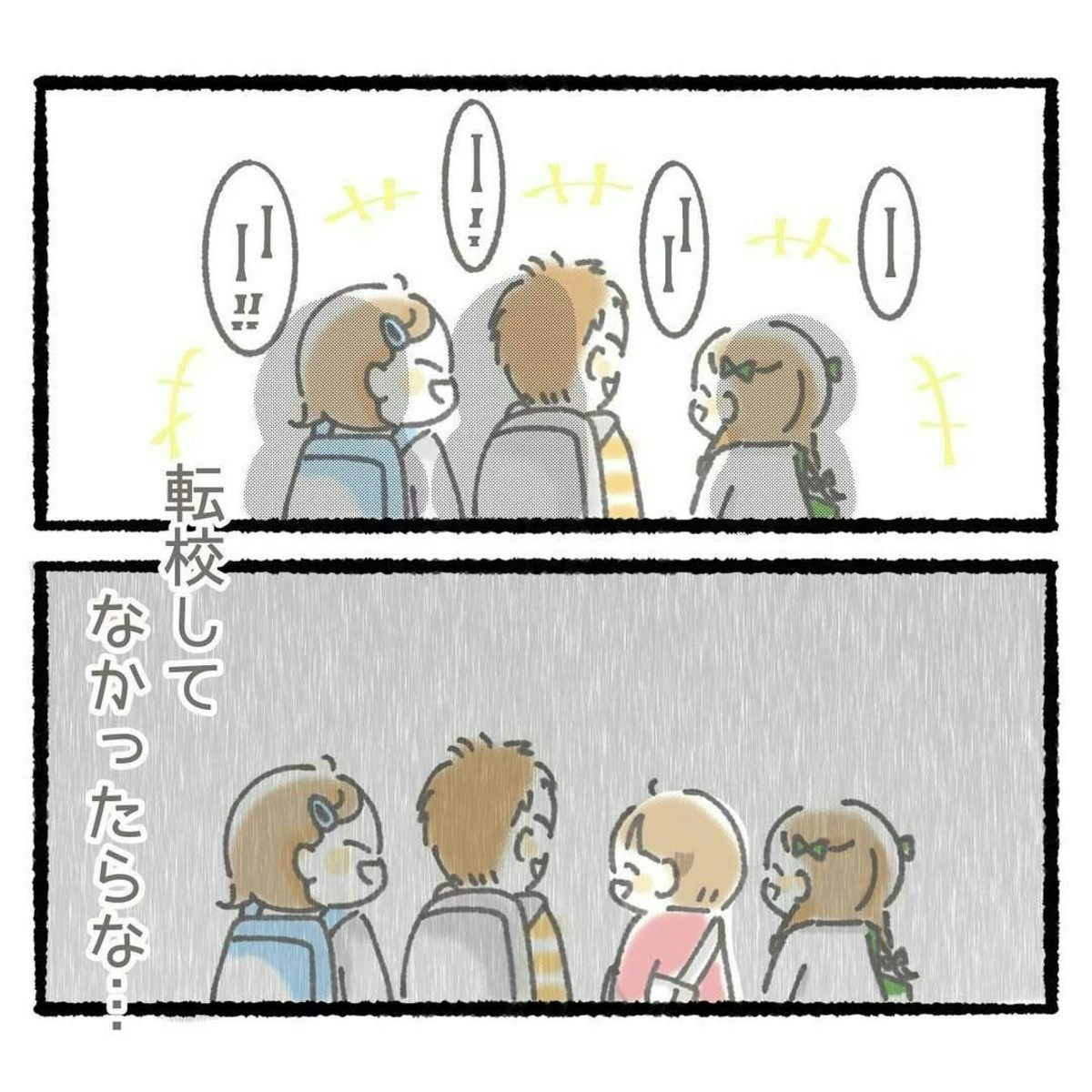 紅子さんは、水田さんのこと、明るくて楽しい子だと思いつつも、劣等感を覚えずにはいられませんでした。あっという間に友だちをつくった水田さんと、なかなか馴染むことができない自分…。つい「転校しなければ…」と想像してしまいます。