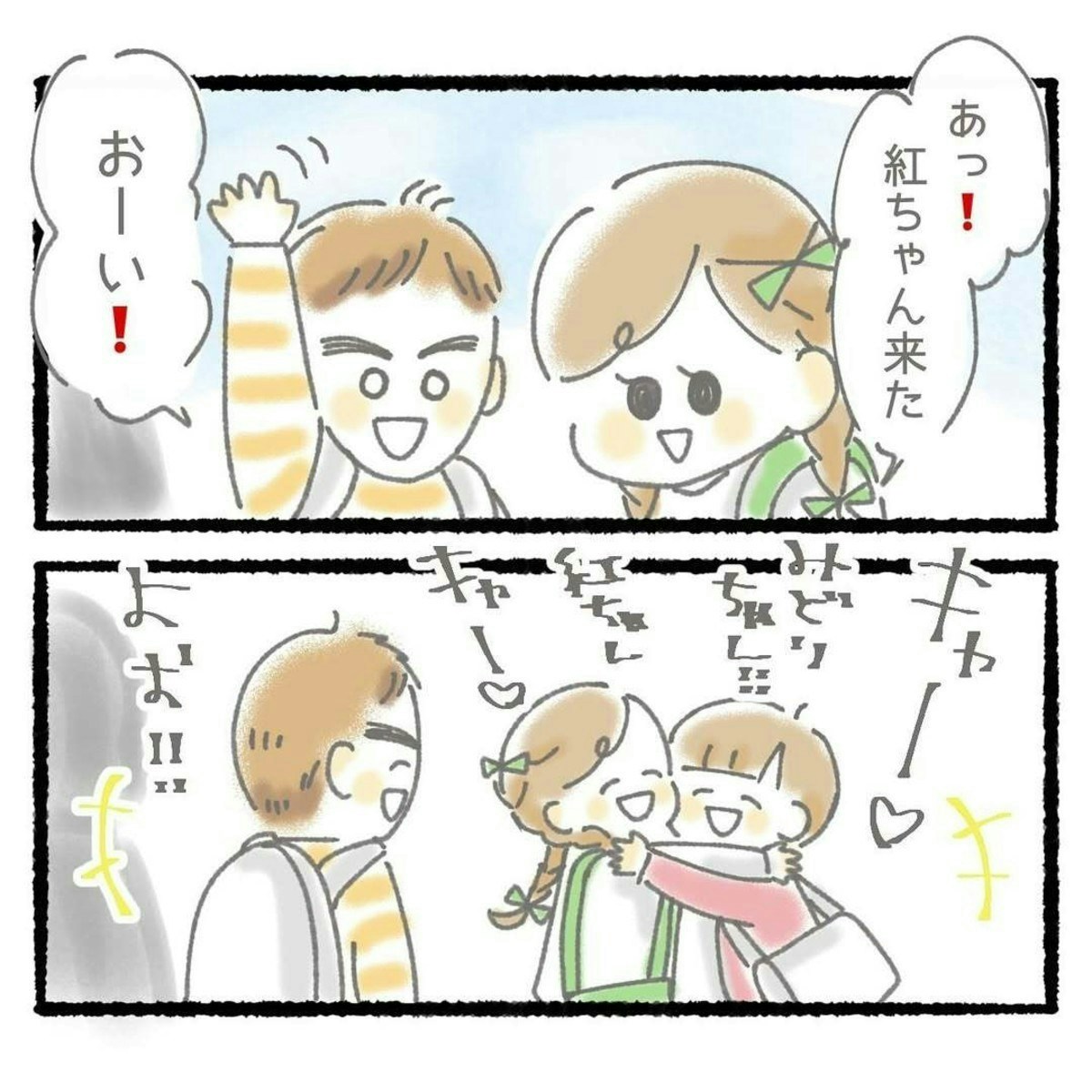 紅子さんは、新しい学校で友だちができず、悩んでいました。そんな中、幼なじみの友だちから遊びの誘いが。これはうれしいですね。会える日を心待ちにしていました。