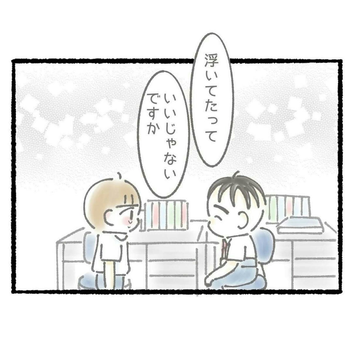 紅子さんは、やっぱり合唱コンクールの表紙の絵について、「描けない」と断ろうと思います。ところが、先生の前で涙があふれてしまいました。すると先生は「浮いていたっていいじゃないですか」と肯定してくれたのです。