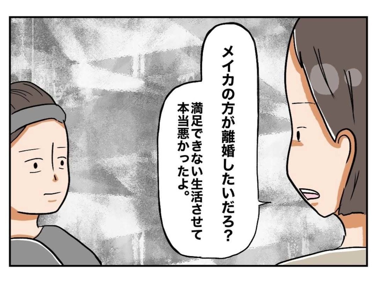 自分で言いだしたにも関わらず、メイカは「離婚」と言われ動揺しているようです。文句やグチばかりでは、夫が怒ってしまうのは当然です。