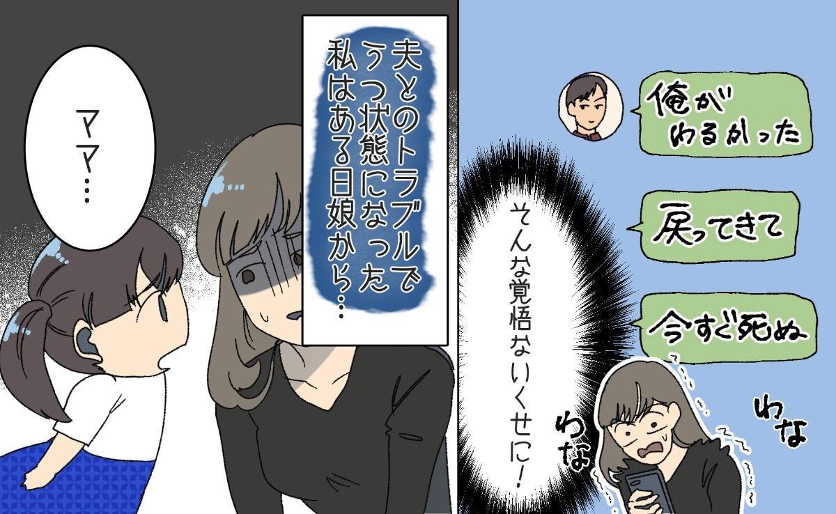 このままでは、子どもたちに笑顔を見せることもできない。離婚届に判を押さず、私が建てた家に居座り続けるツカサ…。話し合いの度に「自死」をちらつかせ、私を脅すような発言を繰り返す彼に見切りをつけるため、私は、離婚調停に入ることを決めた。