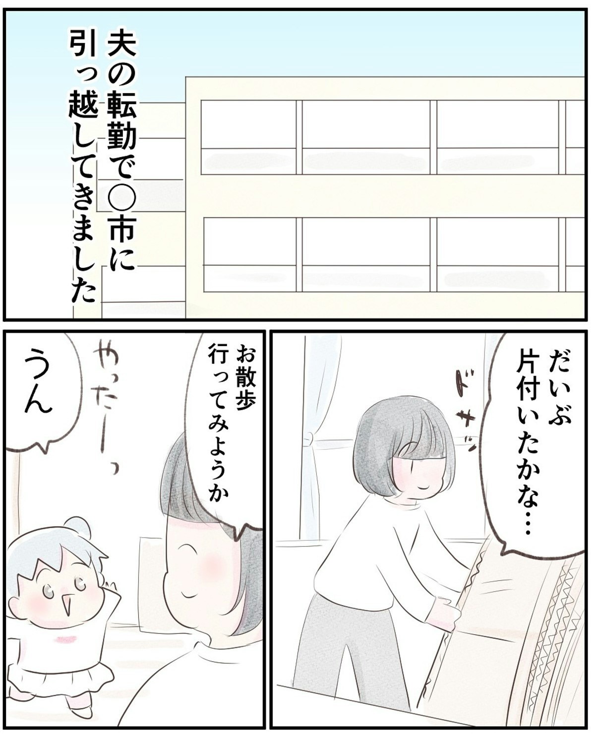 引っ越し作業もひと段落ついたころ、小野さんは2歳の娘のいちかちゃんとお散歩に行くことにします。