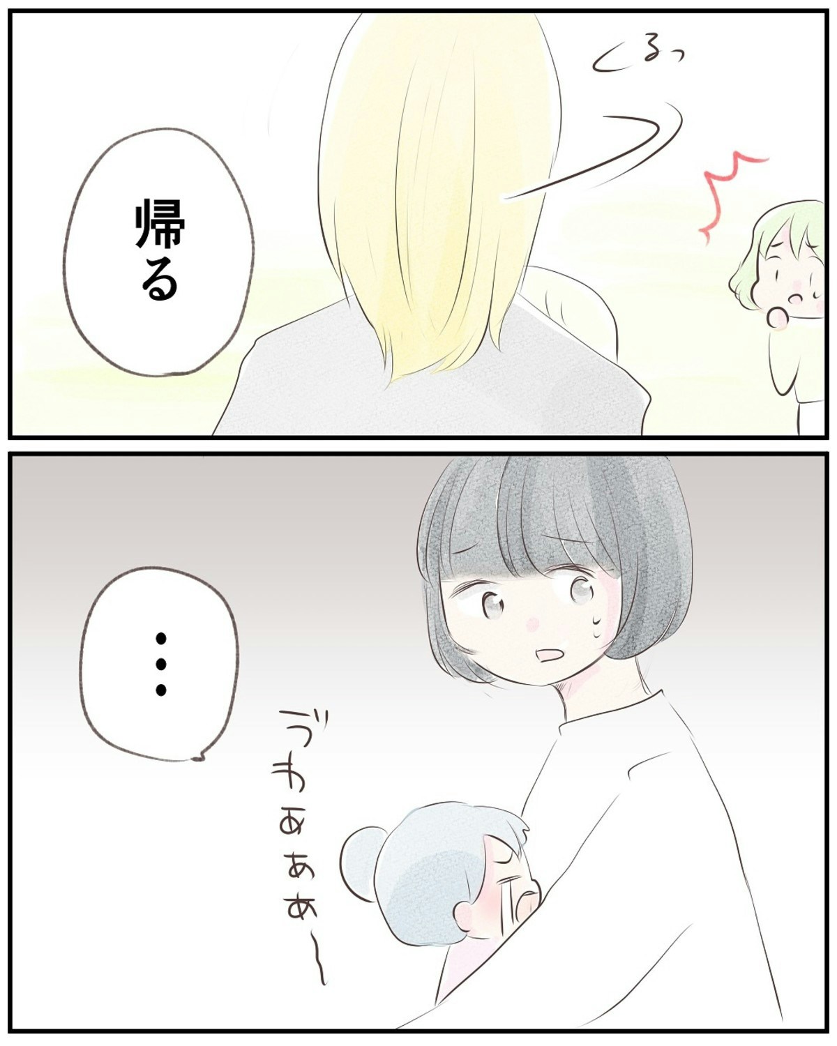 小野さんはいちかちゃんがA太君を押してしまったことを謝ると、相川さんは気にしてない様子で受け入れてくれました。そしていつものようにマンション内の公園で子ども達が遊んでいると、再びいちかちゃんとA太君がモメ始めてしまったのでした。