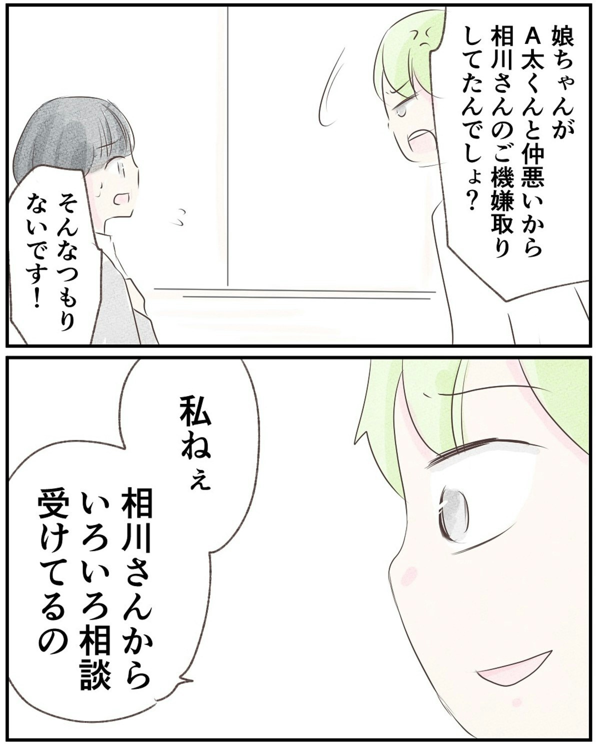 ところが、子どもたちの関わり方や性格の違いから、次第にギクシャクし始めます。特に相川さんの息子・A太くんと、いちかちゃんがもめる場面が増え、小野さんは気をつかうようになってしまいます。さらに平田さんが相川さんに強く依存している様子が見え始め、3人の関係は次第にバランスを崩していきました。