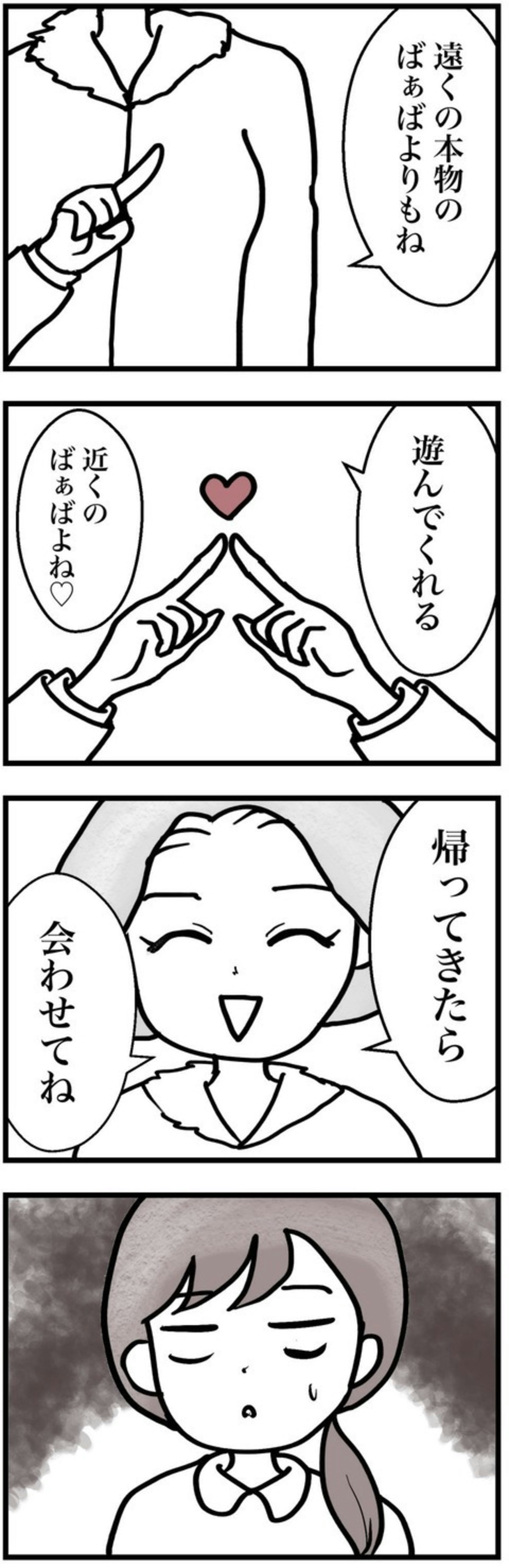 「遠くの本物のばぁばよりも、近くのばぁば」という喜美子さんの発言に、まゆさんはただあ然とするしかありませんでした。