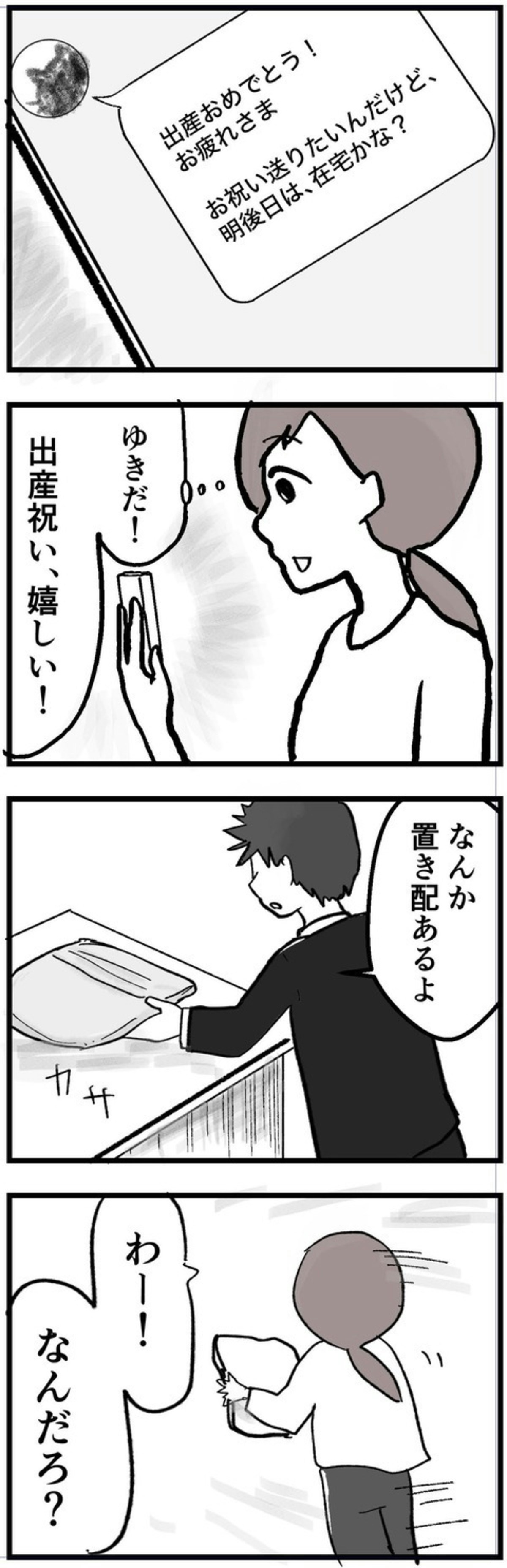 そんな時、友人から届いた出産祝いが心の支えとなり、笑顔を取り戻しました。