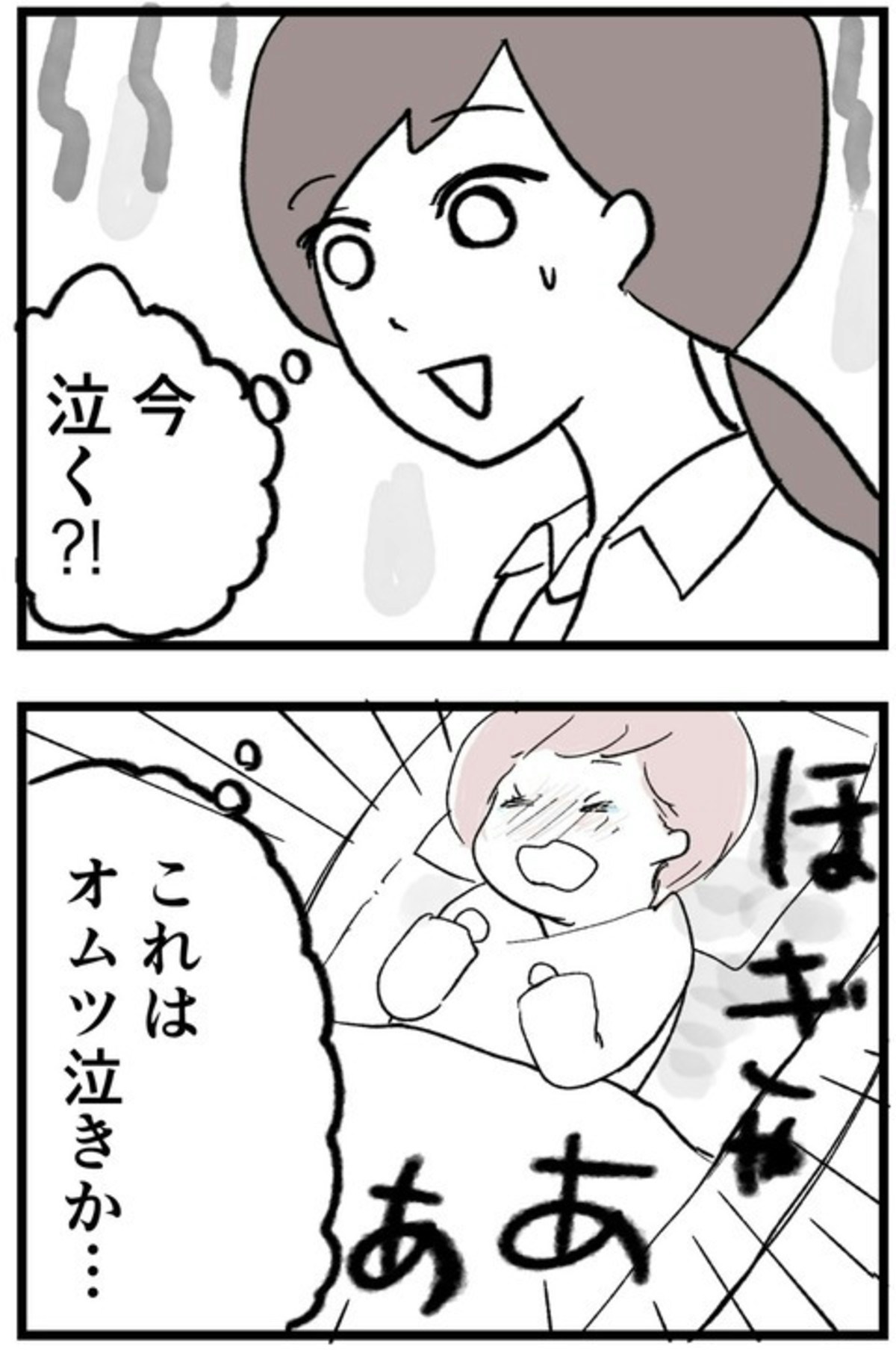 機嫌を損ねた喜美子さんに気を遣う中、追い打ちをかけるように赤ちゃんがおむつで泣き出してしまいました。