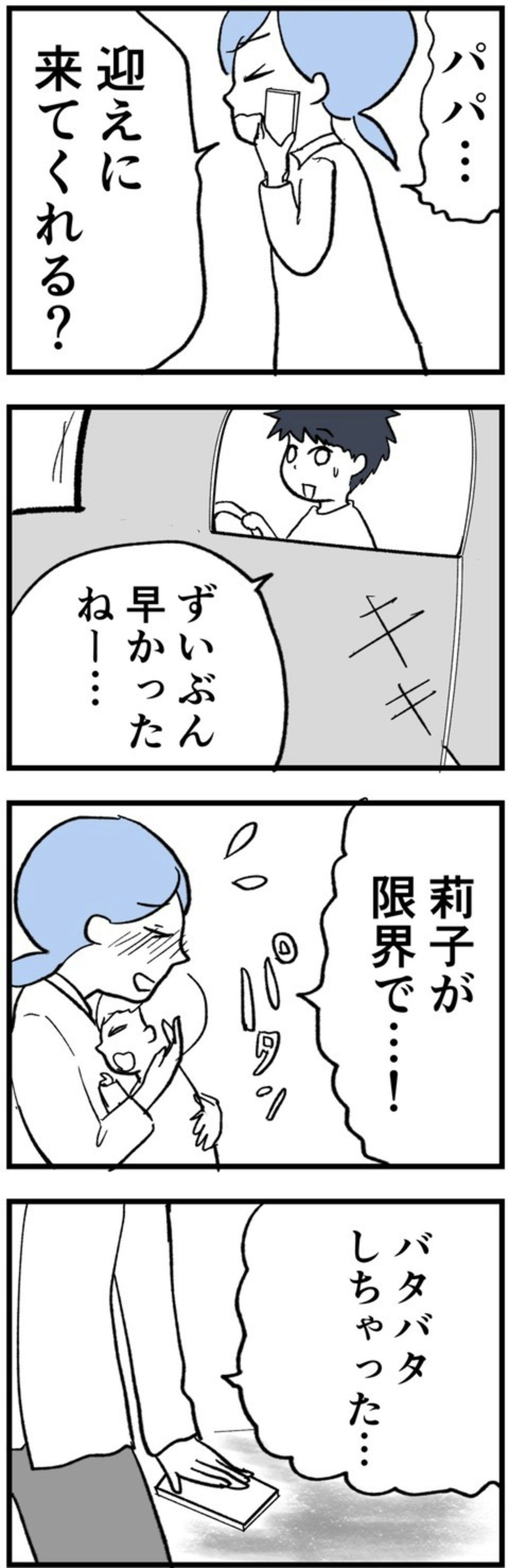 急いでカフェを後にしたまゆさんは、夫に迎えを頼み帰宅。おむつを替えると、娘はすぐに落ち着きを取り戻しました。