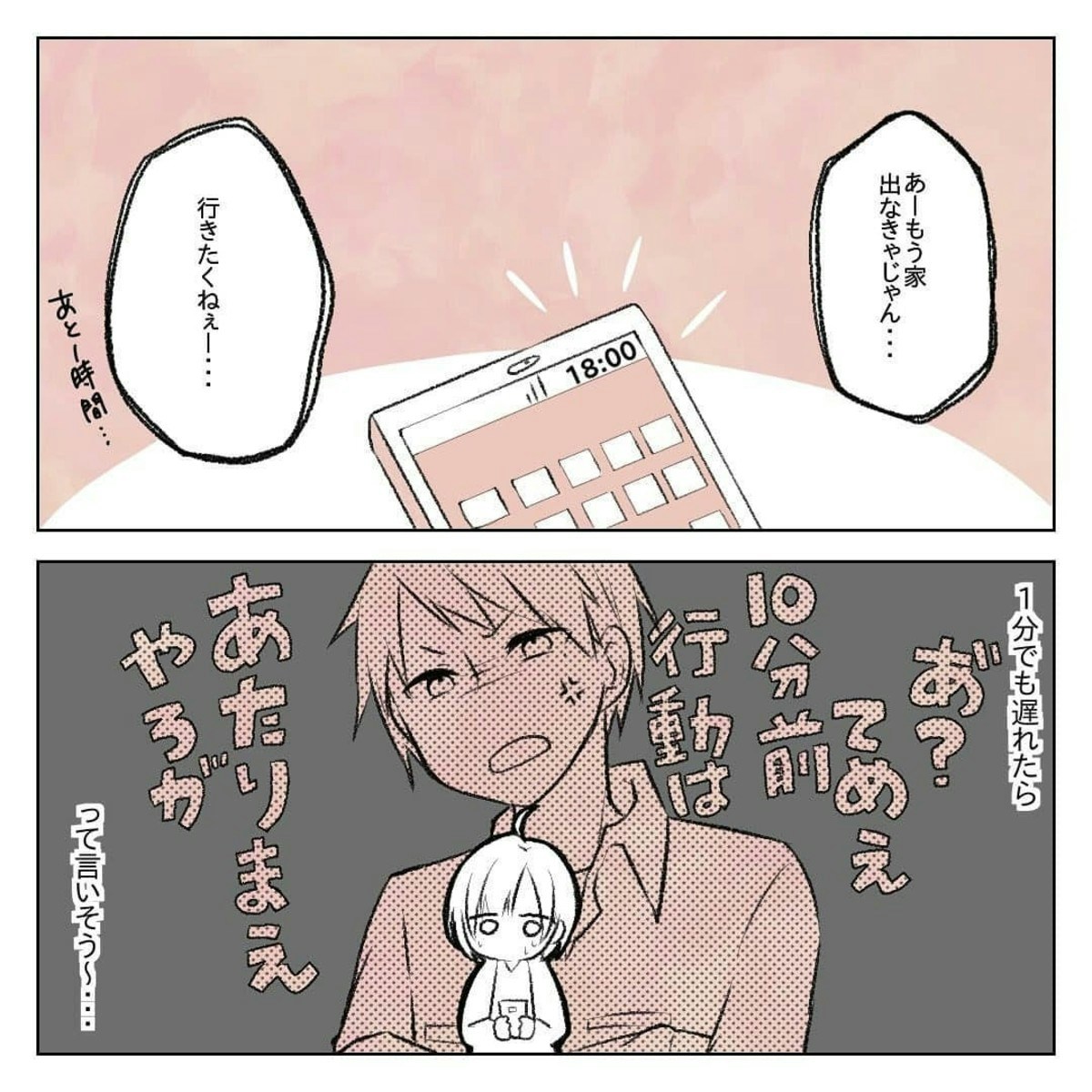 当日になっても飲み会に行きたくないと思っていたりんさん。しかし、ゆーさんに小言を言われるのを回避するため急いで出かけていきます。