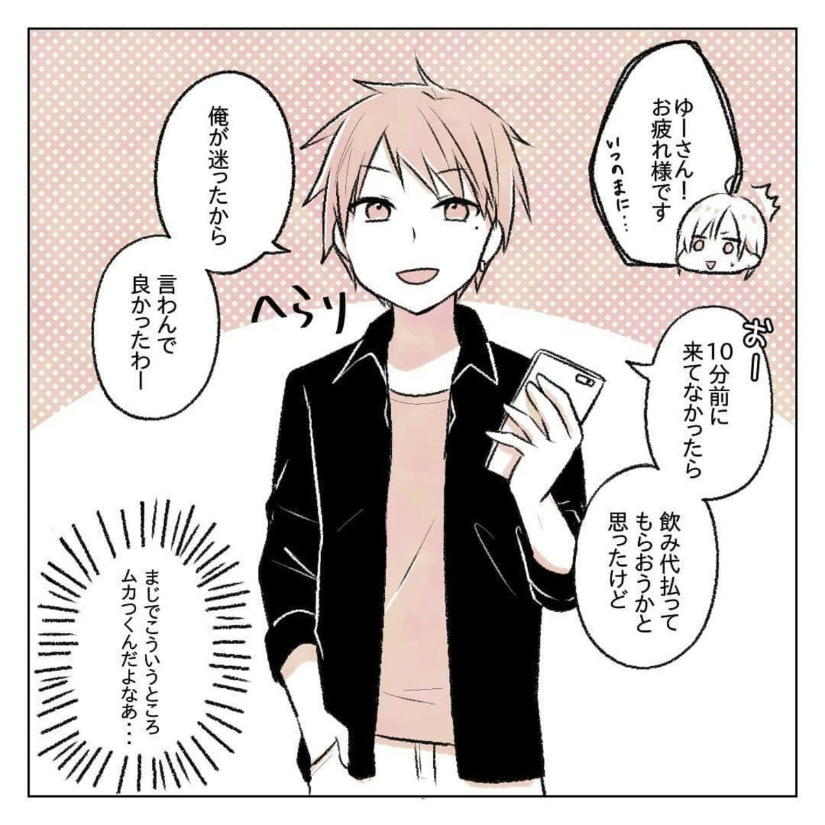 彼氏との別れ話で疲れている状態なのに、苦手な先輩と2人で飲み会なんて…りんさんの気持ちは複雑です。先に到着していたゆーさんの態度にも腹が立ってしまう始末で、りんさんの気持ちは穏やかではありません。そんな会社の先輩と後輩の飲み会はどうなってしまうのでしょう。