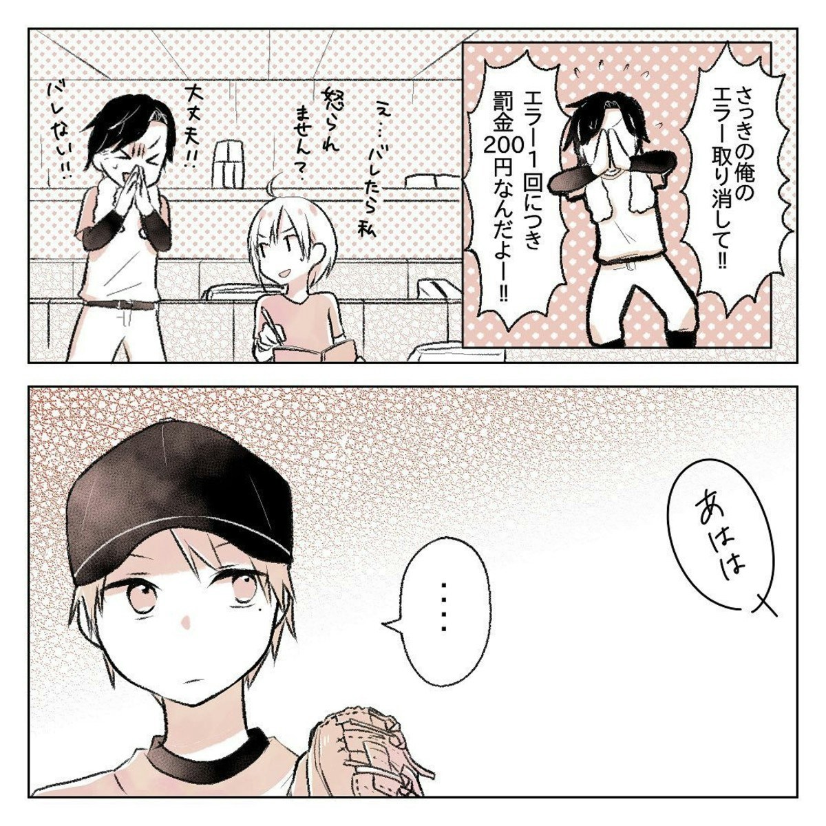 先輩・ゆーさんとの飲み会から次の日曜日、りんさんは草野球の試合に顔を出しました。まだマネージャーになるとは決めていないものの、初めてのスコア書きにも挑戦します。まだ慣れないので書き方を聞こうとチームメイトに話しかけると…。