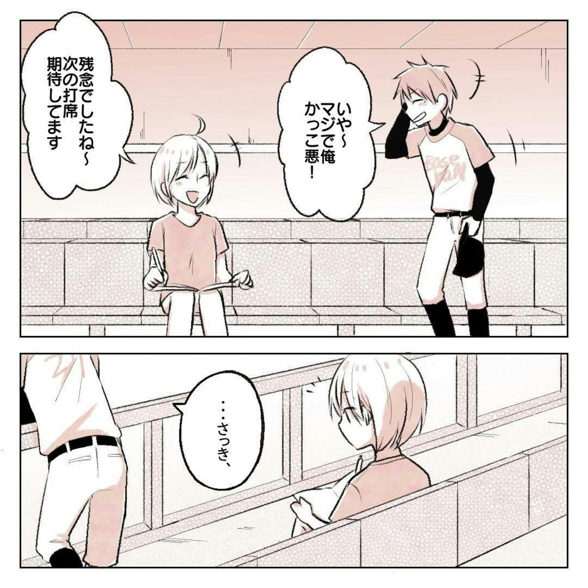 三振して戻ってきたゆーさんは、かっこいい姿を見せられず自虐気味です。そんな彼にりんさんは励ましの声をかけました。
