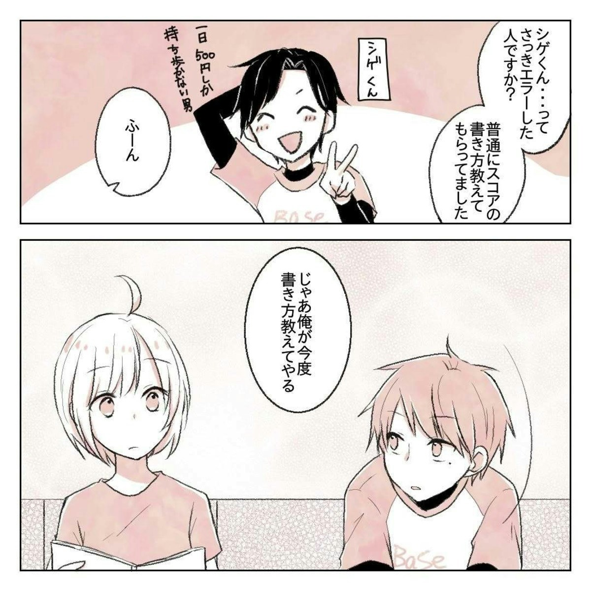 三振してベンチに戻ってきたゆーさんに、りんさんは笑顔でフォローの言葉をかけました。そんなゆーさんは、りんさんとチームメイトが何を話していたのか聞いてきました。そして、今度は自分がりんさんにスコアの書き方を教えると言います。