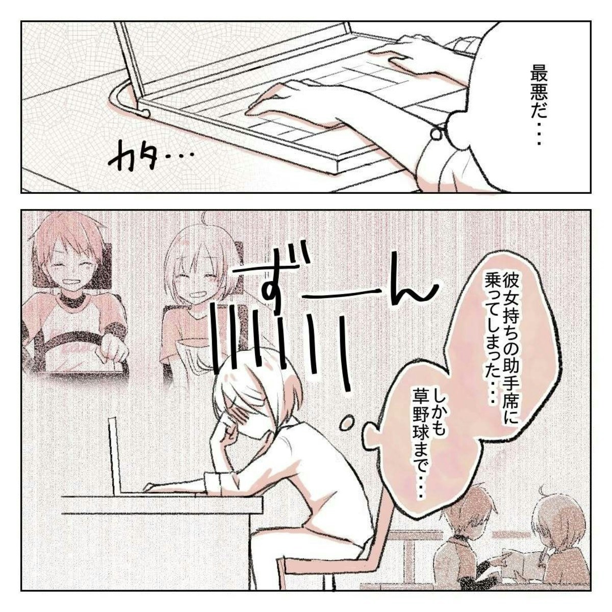 りんさんは、彼女持ちのゆーさんを避けようと草野球へ行くのをやめてしまいました。マネージャーも引き受ける前でホッとしているものの、その表情は暗く沈んで見えます。そんなとき、会社の飲み会のお知らせが回ってきました。もしかしたら飲み会でゆーさんと顔を合わせてしまうかもしれず、りんさんの気持ちはまたしてもザワついてしまいます。