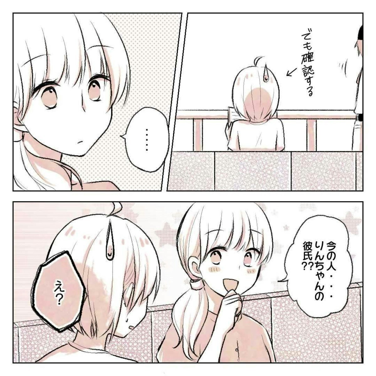 りんさんとゆーさんを見て、シゲさんの彼女は「りんさんの彼氏?」とうれしそうに聞いてきました。りんさんはそれをすぐに否定します。