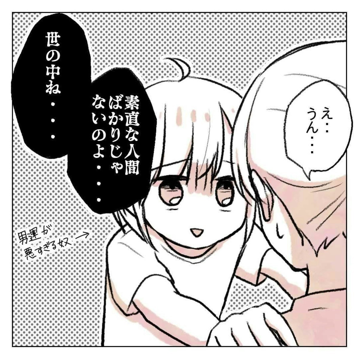 りんさんと違ってシゲさんの彼女はゆーさんに彼女がいないのではと思っている様子です。そんな純粋なシゲさんの彼女を諭すように「素直な人間ばかりじゃない」と言うりんさんの顔、なんだか説得力があって怖くなります…。