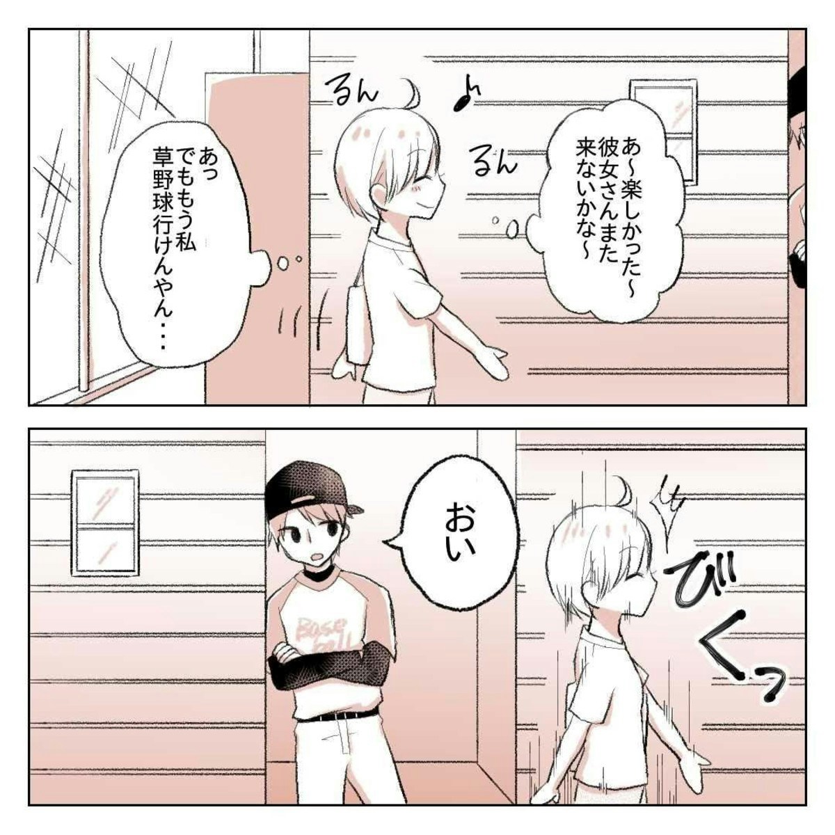 草野球の試合が終わり、りんさんは仲良くなったシゲさんの彼女と遊ぶ約束をして別れました。しかし、りんさんはもう草野球に行くつもりはなく、こんな風に彼女と会う機会はないと思っていました。そんなりんさんが帰ろうとしていたところ、ゆーさんが話しかけてきて…。
