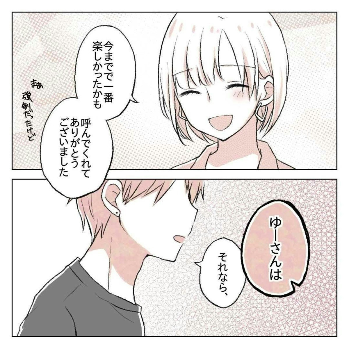 りんさんは、入社当初に教育係をしてくれた先輩・ゆーさんのことが苦手でした。ゆーさんとは年齢は同じとはいえ先輩だという意識もあり、まったく打ち解けることのないまま教育期間は終了。しかしこの後、ゆーさんに誘われた親睦会をきっかけに先輩・後輩の間柄が少しずつ変化していきます。