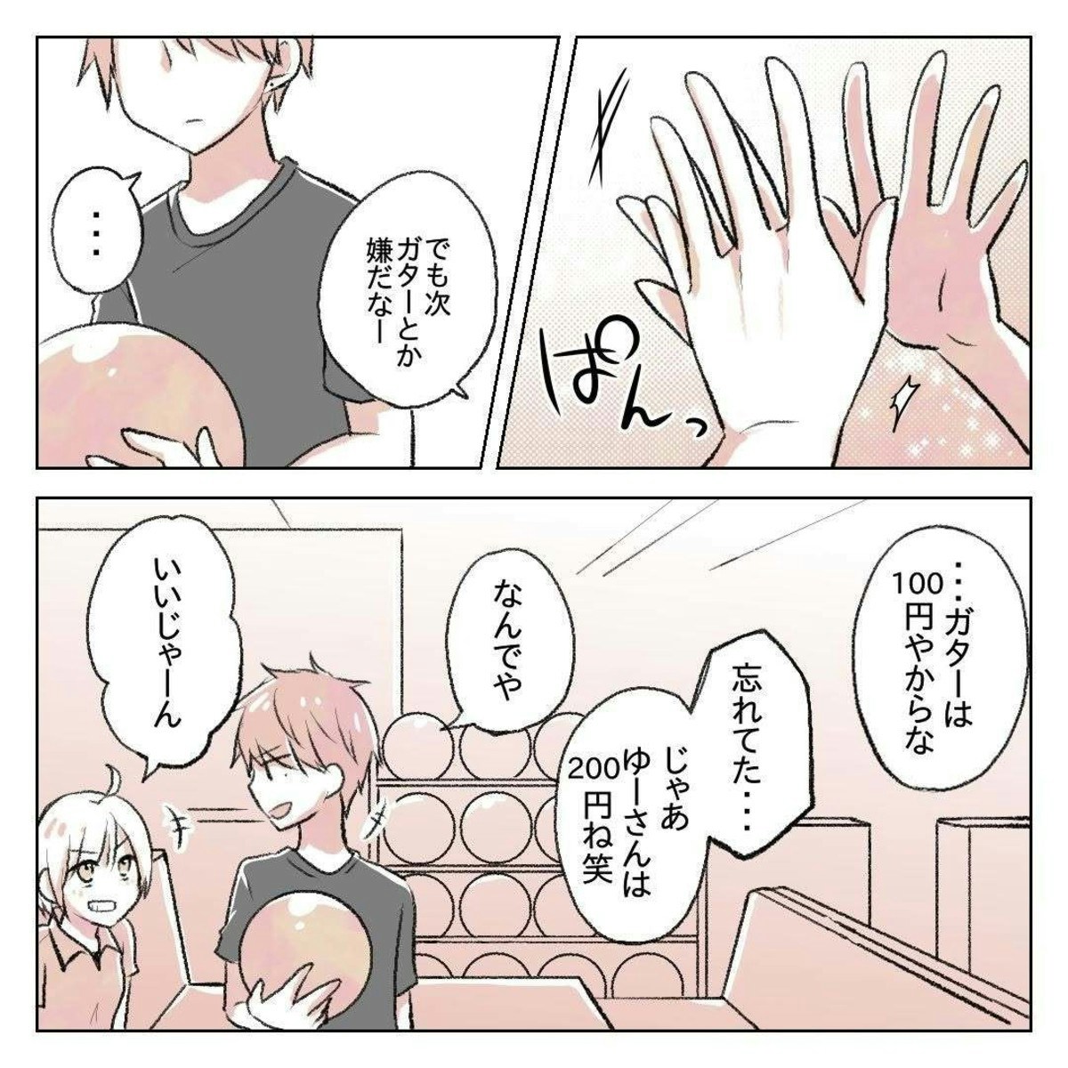 ゆーさんは草野球のあとの飲み会後、りんさんと二次会へ。ボーリング場に連れてこられたりんさんは、最初はしぶしぶといった感じだったのに、ストライクを連発。すると次第にゆーさんよりボーリングを楽しみ始めます。