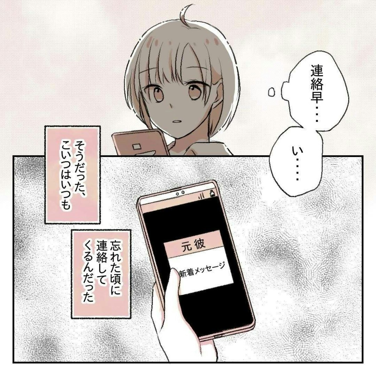 ゆーさんを意識するようになり初めて彼と顔を合わせたりんさん。気まずい気持ちのりんさんとは違い、ゆーさんは普段通りに接してくれます。そんなゆーさんからまた遊びの誘いを受けうれしい気持ちでいたところ、元カレから連絡が入っているのに気づきます。