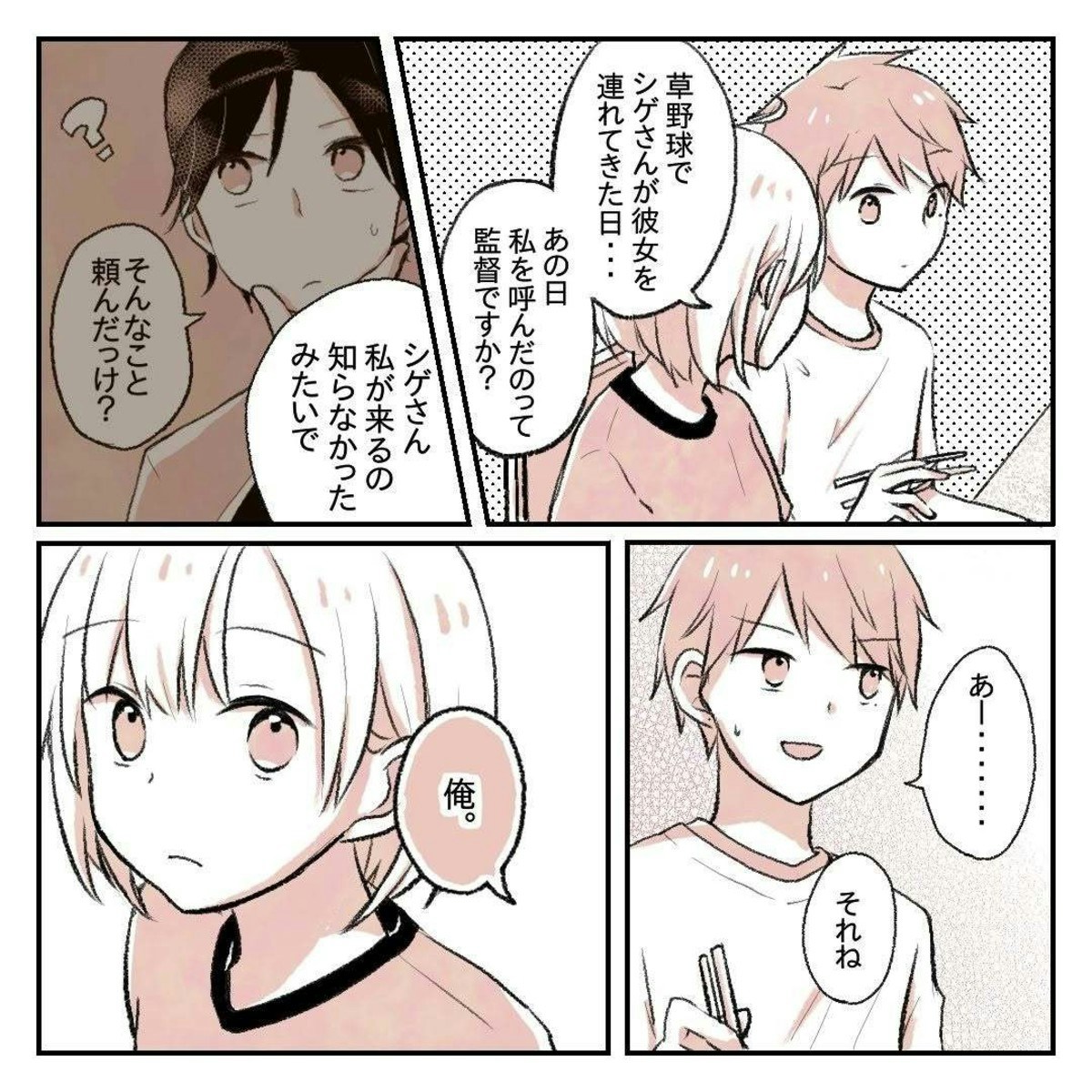 ゆーさんとりんさんは、会話もはずんでたのしい時間を過ごしていました。そんな中でりんさんが、ゆーさんに「シゲさんに頼まれたから草野球に顔を出してほしい」と言われた日の話をすると…。