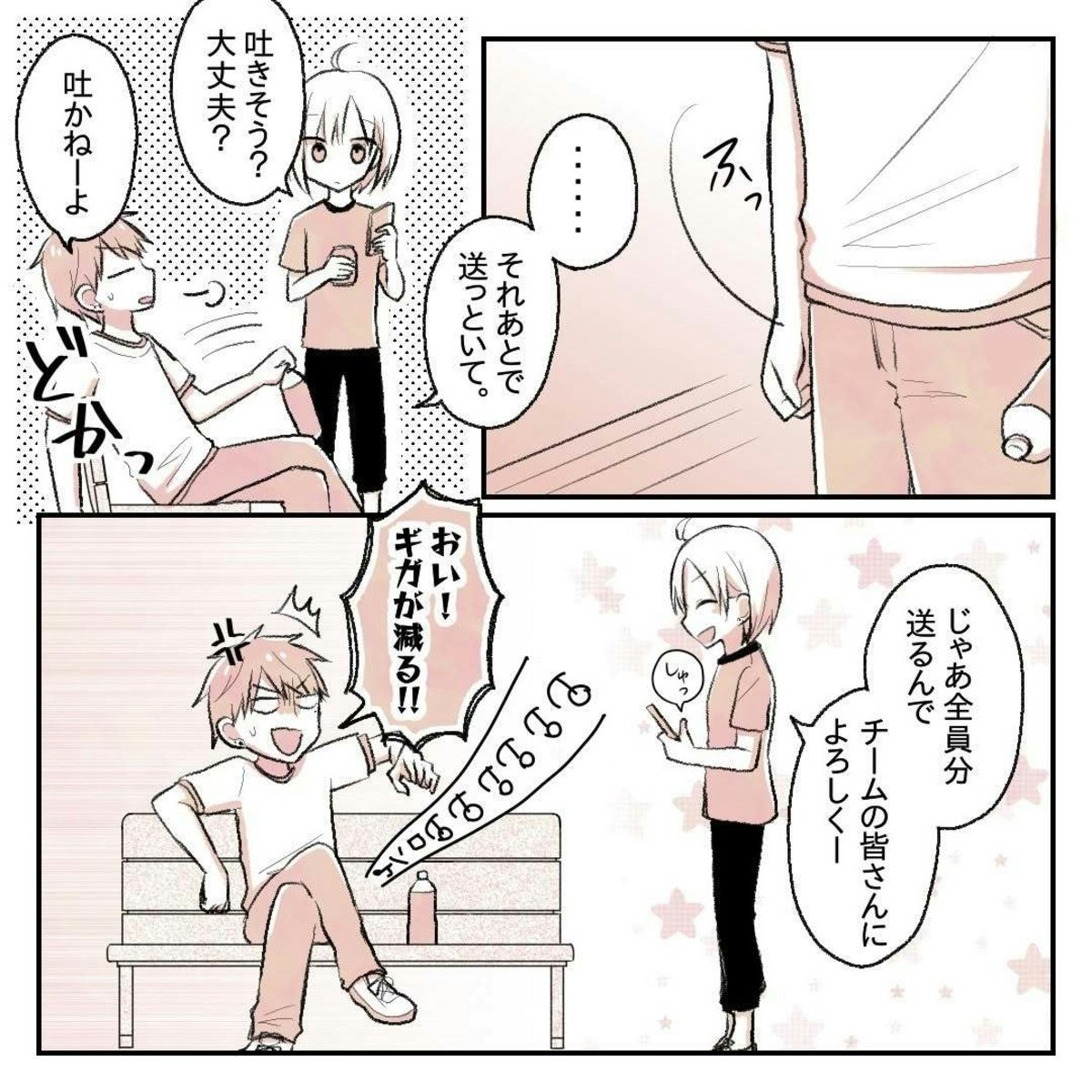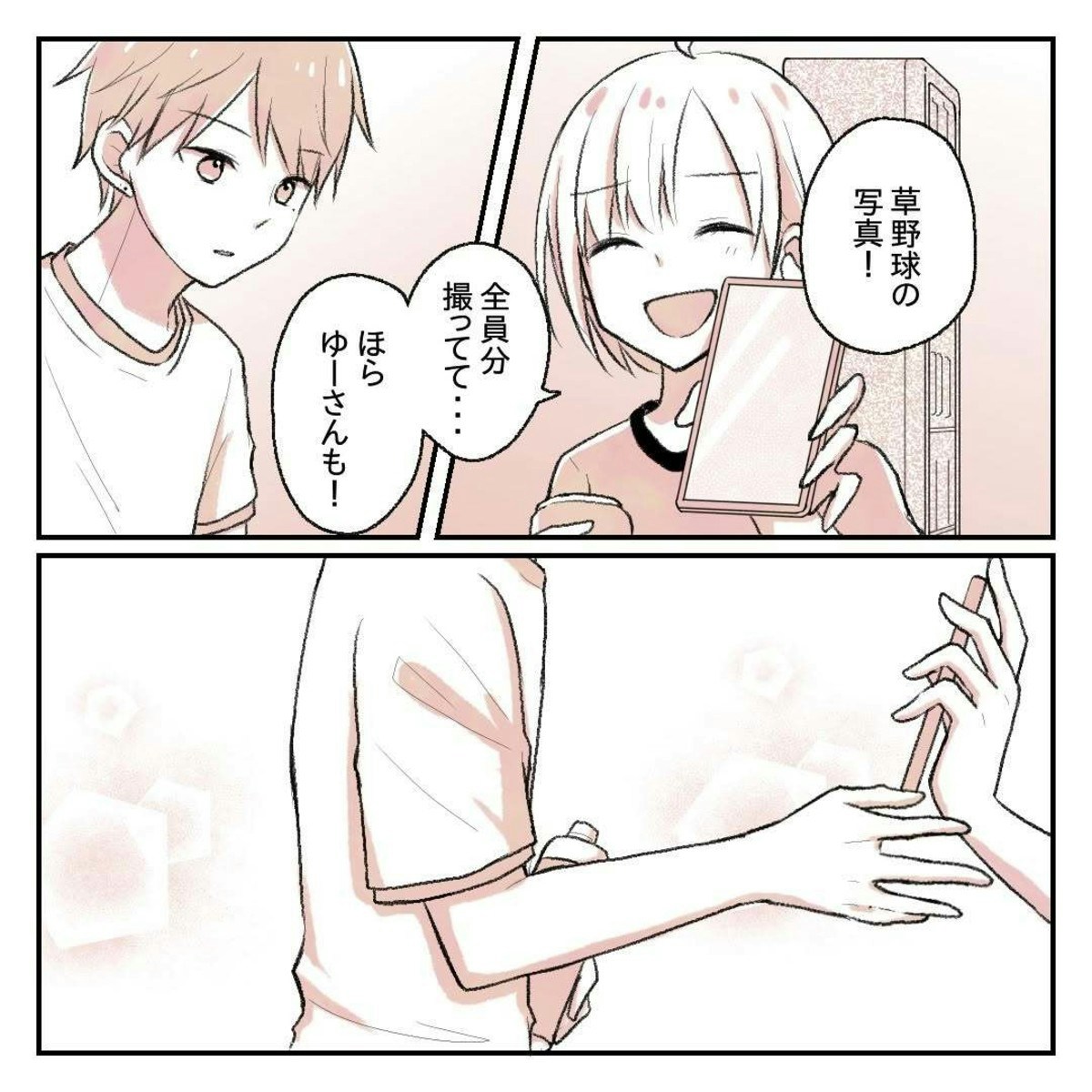 りんさんが草野球のときに撮った写真を見せると、ゆーさんはしばらくスマホの画面を見つめていました。少し様子がおかしいと思ったりんさん、しかし気づくとゆーさんはいつもの態度に戻っています。