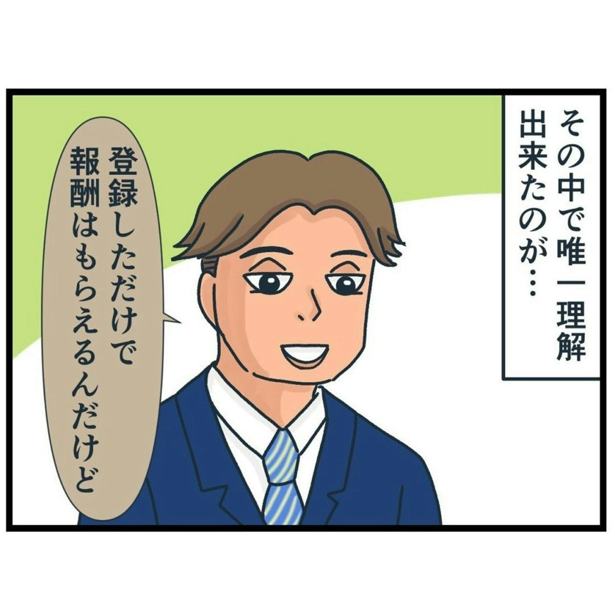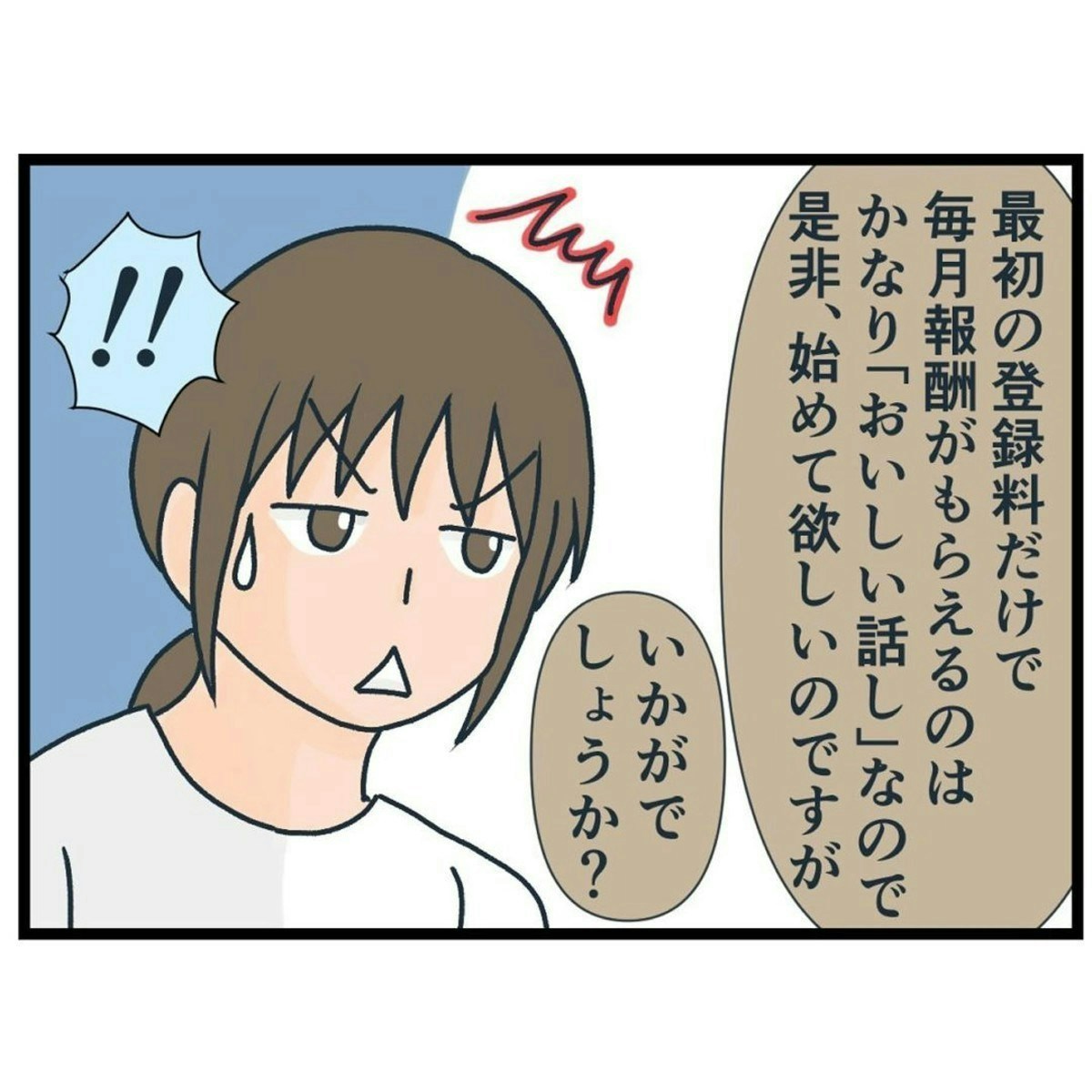 そもそもあずきがやっていた「調子のいいバイト」の話を聞くために会ったわけですが、あずきが会わせたいといったサギ也は登場からしてうさんくさく、ナエくまさんは何となく「怪しい」と感じていました。しかし、あずきとの関係もあり、はっきりと断れないまま話が進み…?